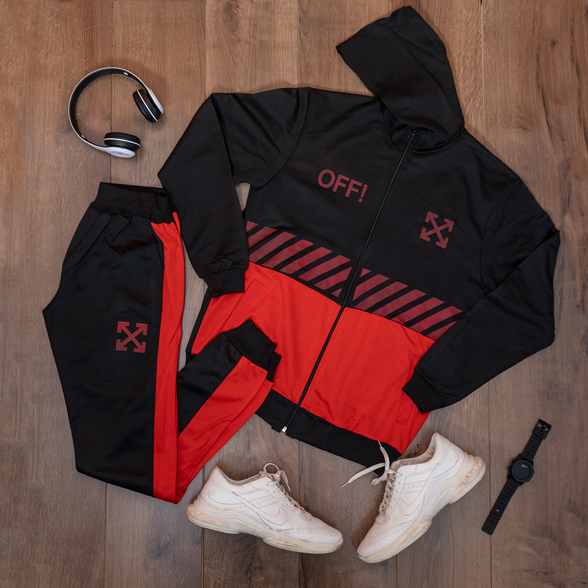 ست سوییشرت شلوار Off-Whiteمردانه مشکی قرمزمدلlako