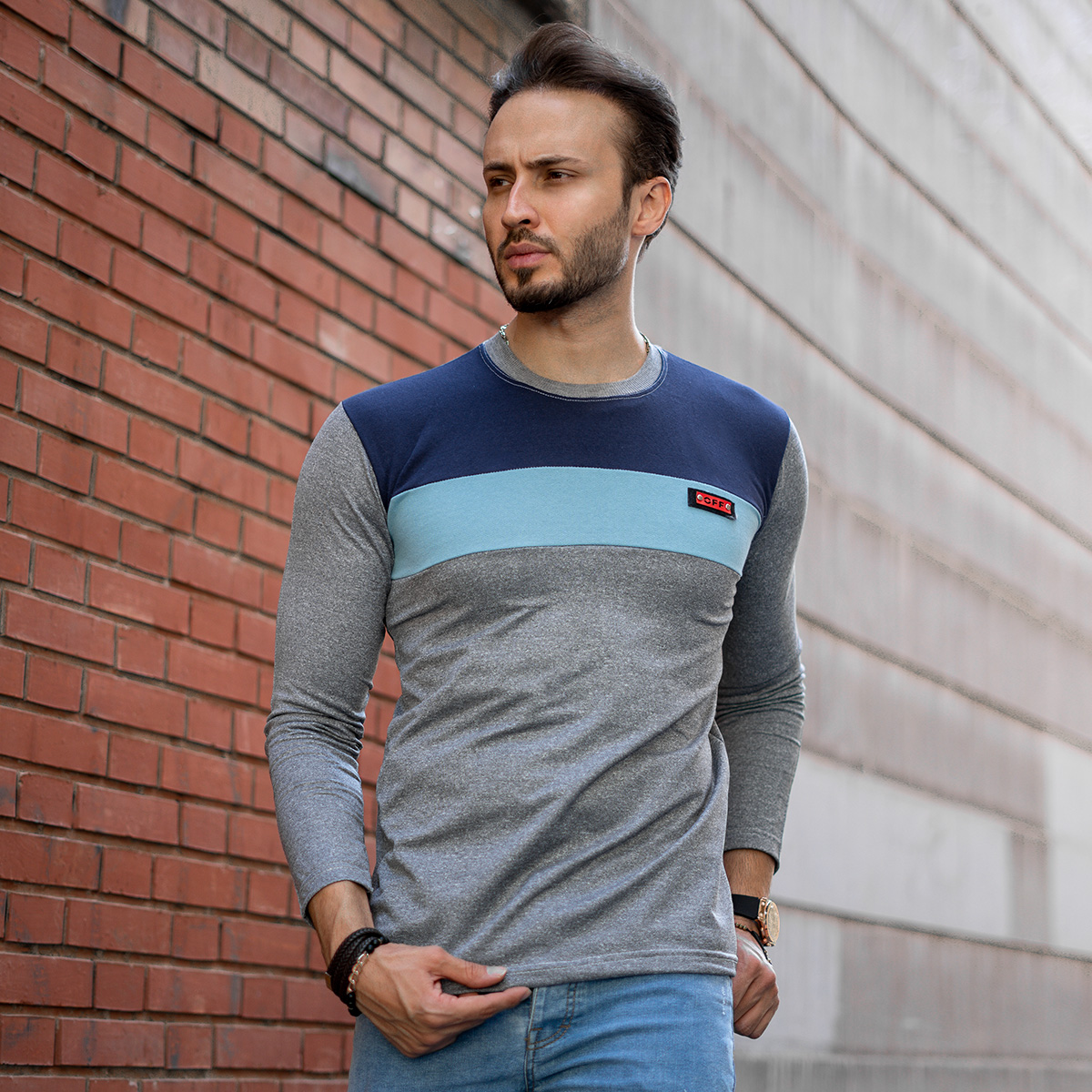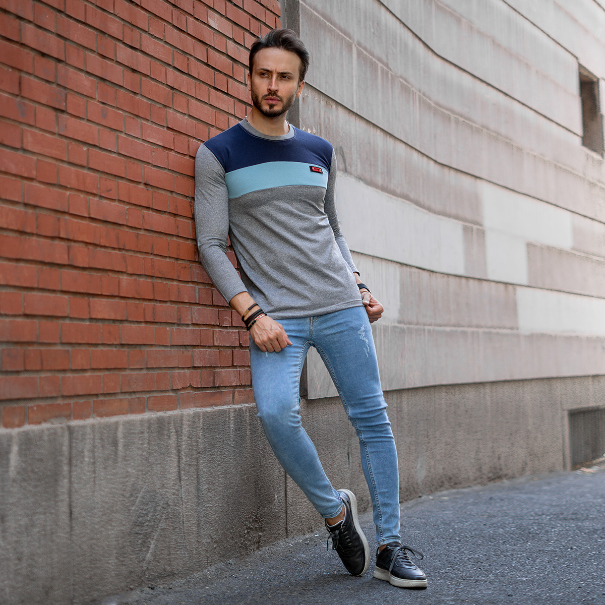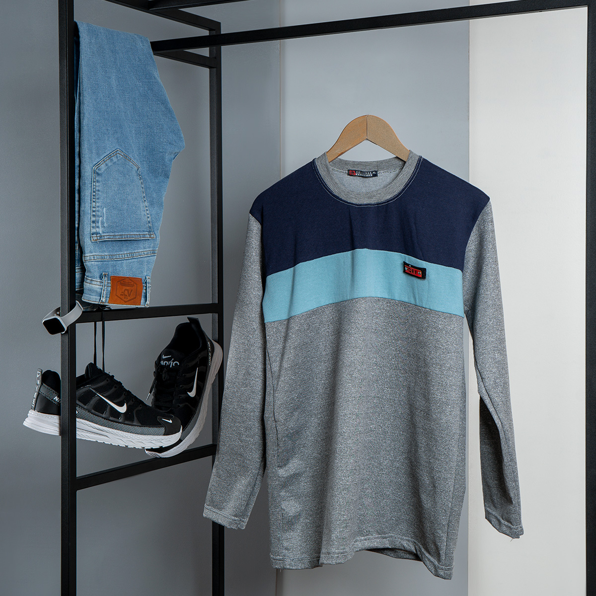 تیشرت پاییزه دوتیکه سرمه ای آبی مدل Farhod