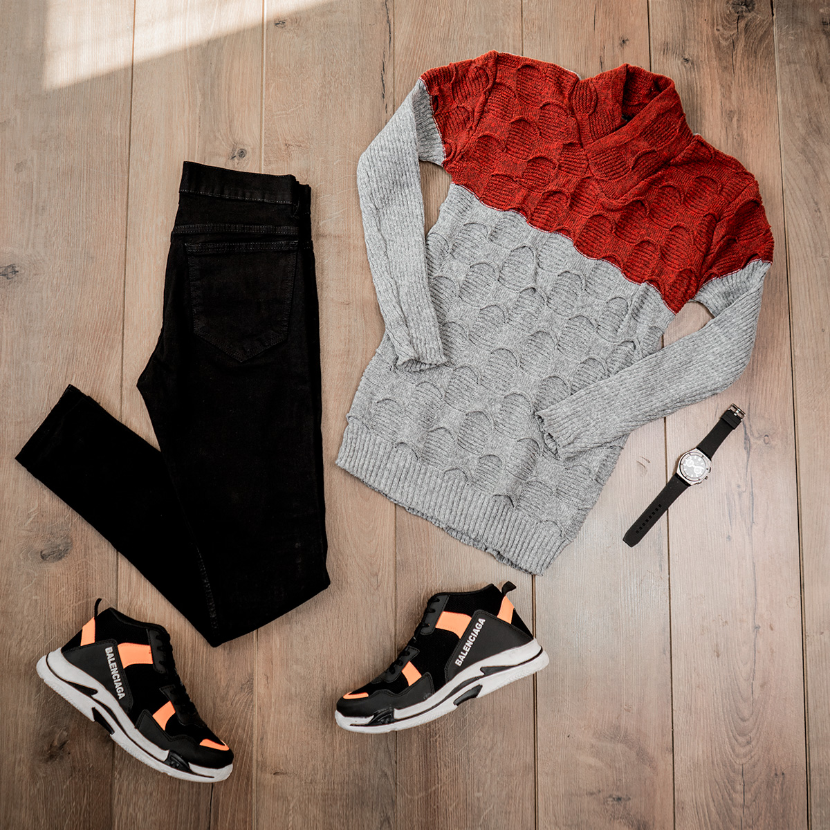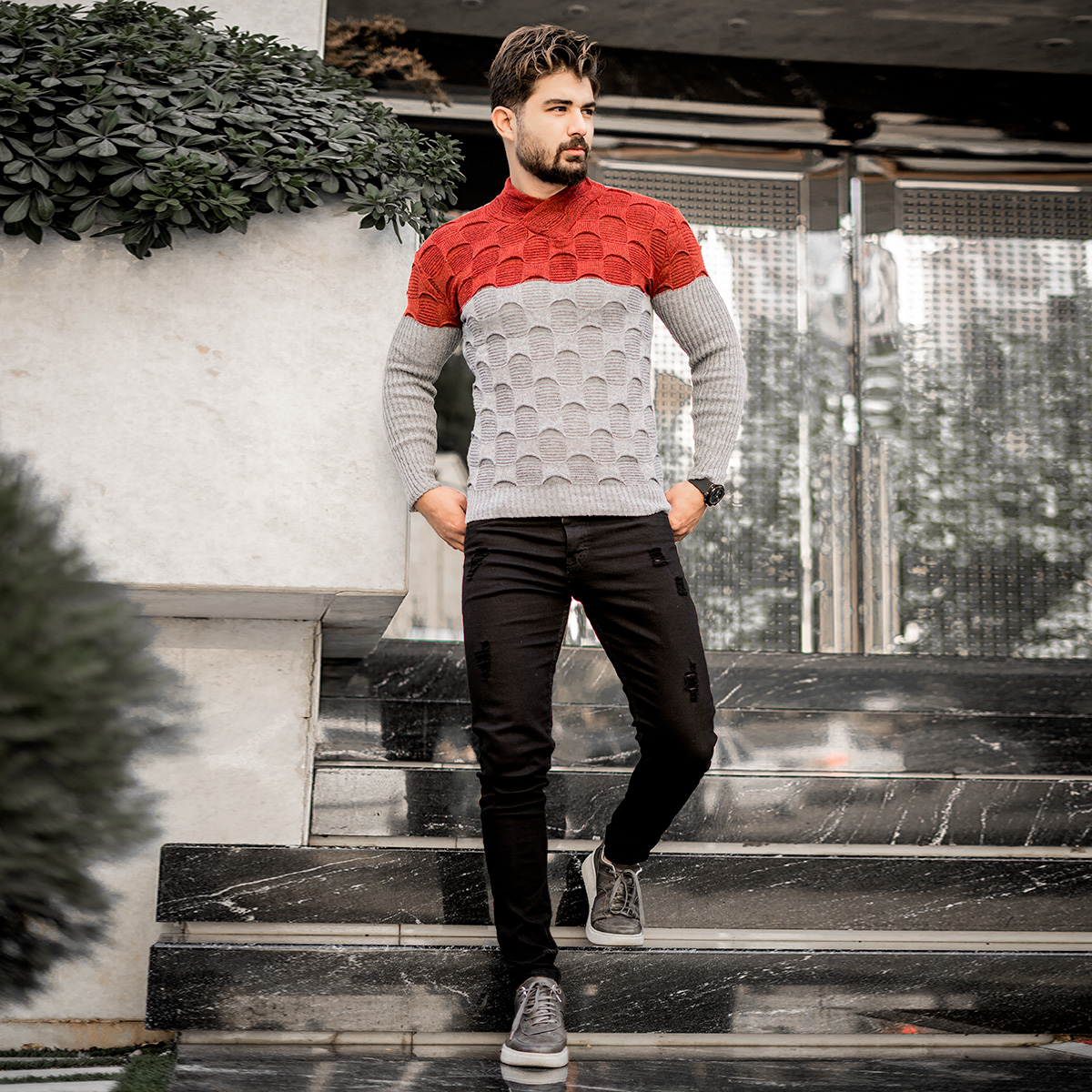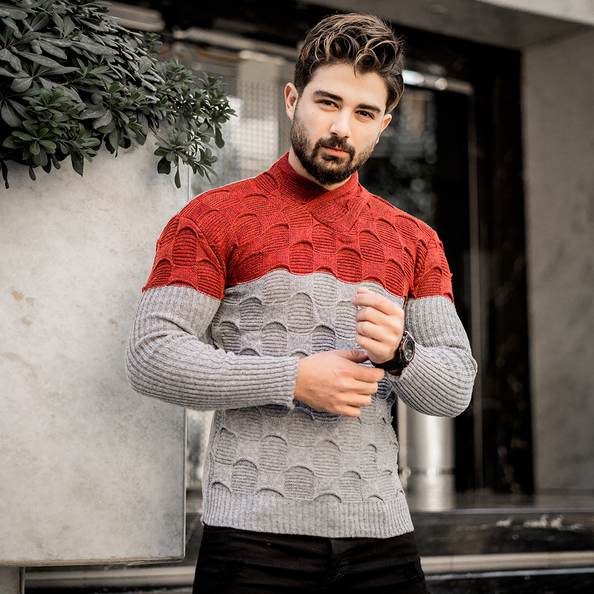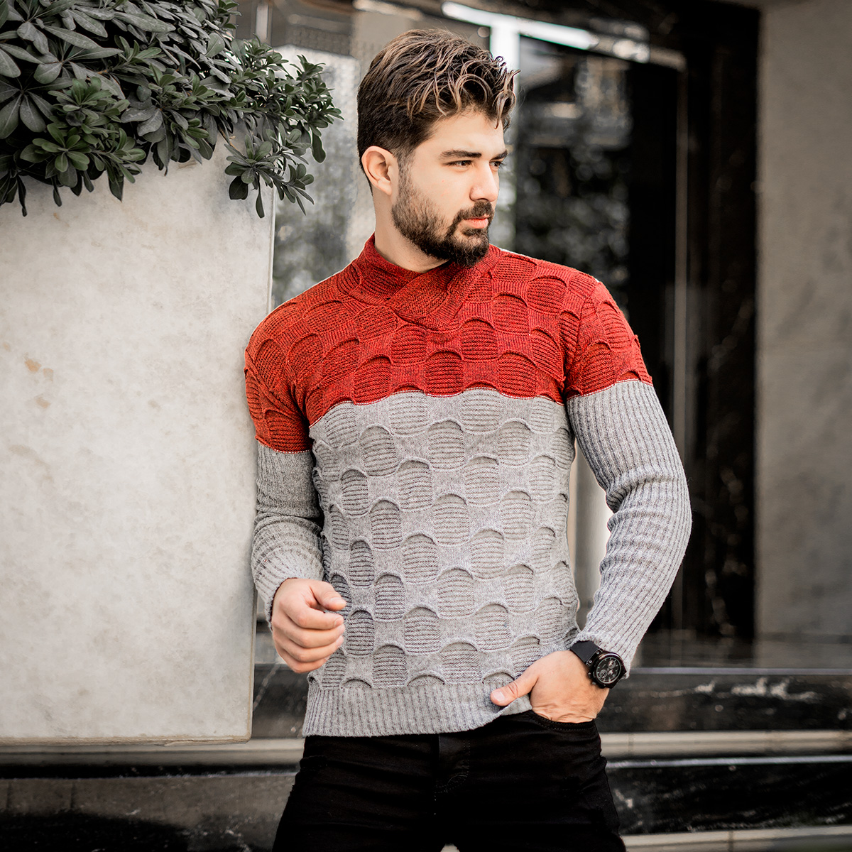 پلیور دورنگ قرمزطوسی مردانه مدلArkia