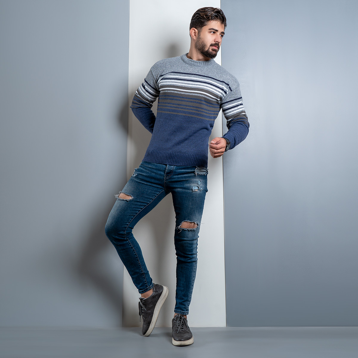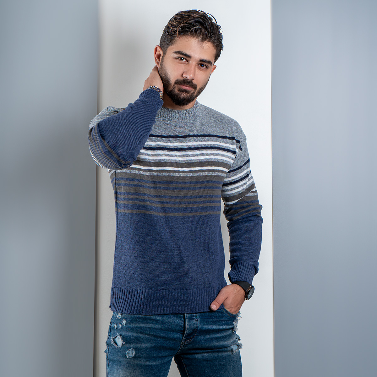 پلیور راه راه سرمه ای کرم(T) مردانه مدل otil