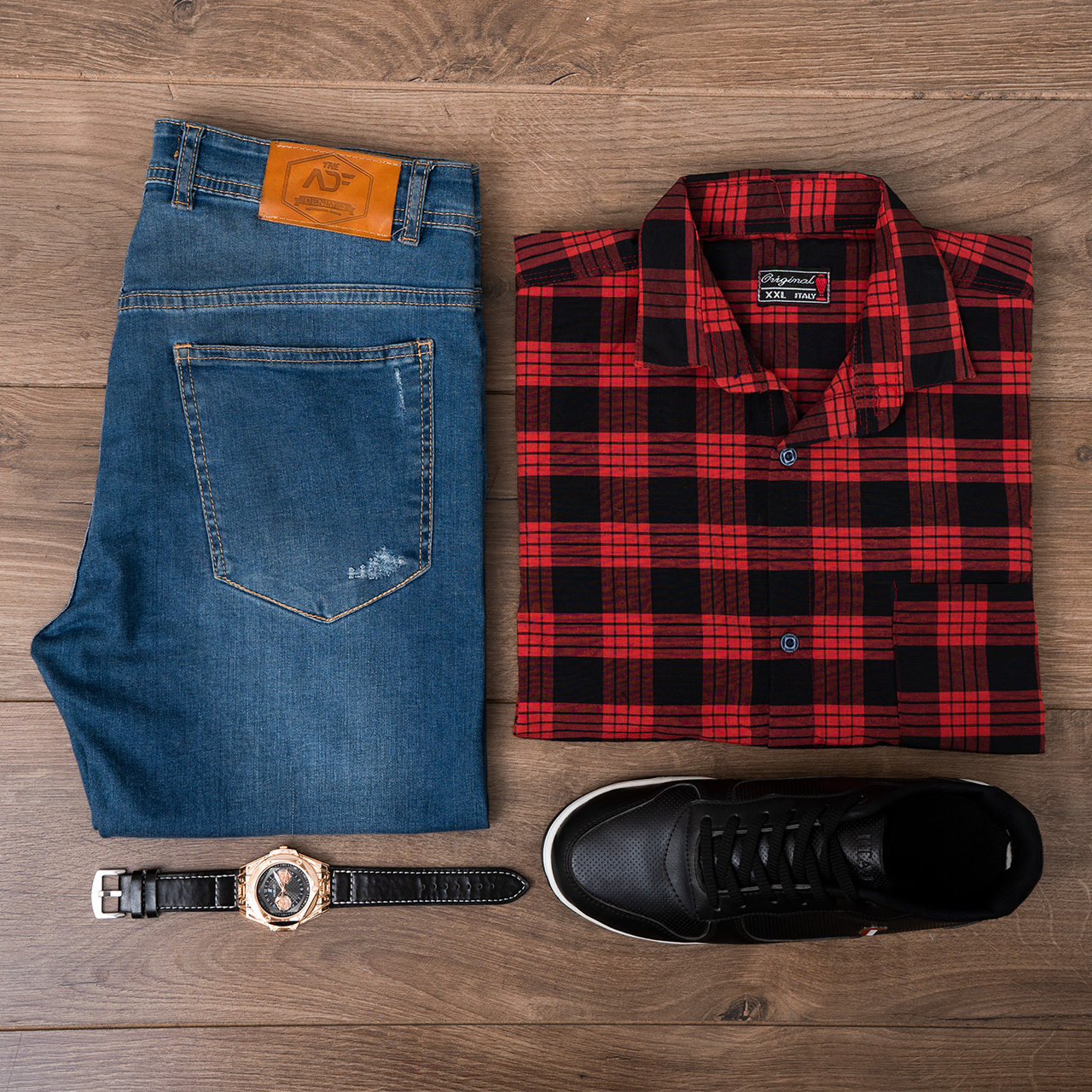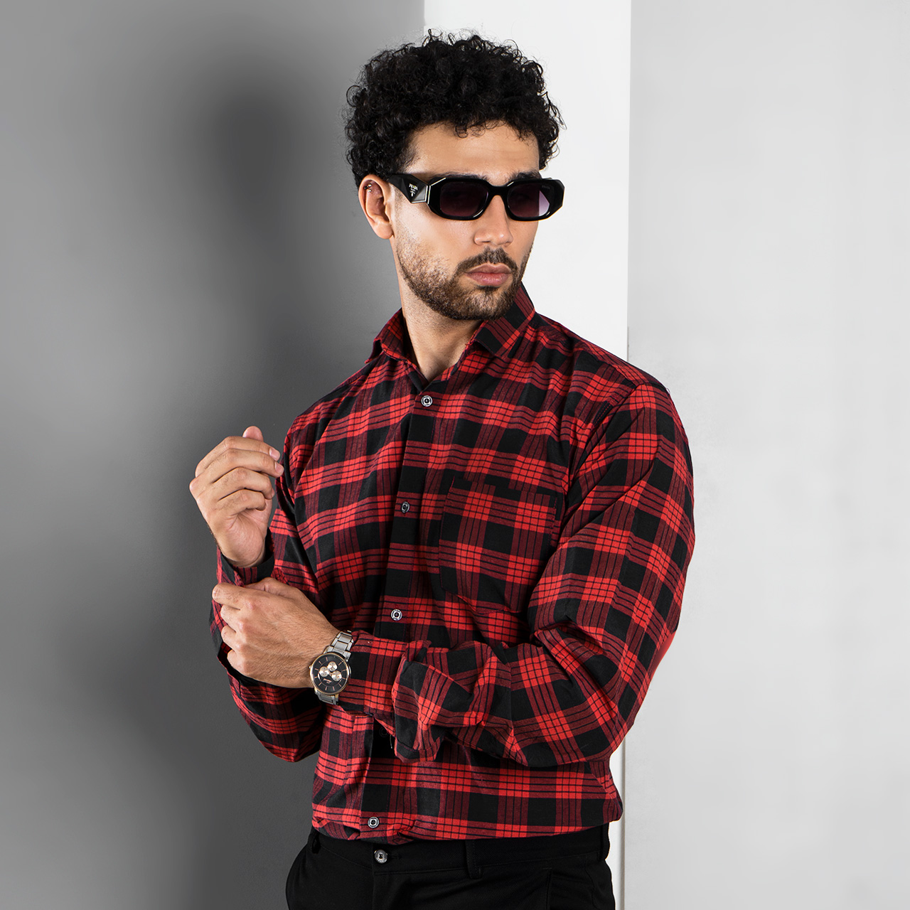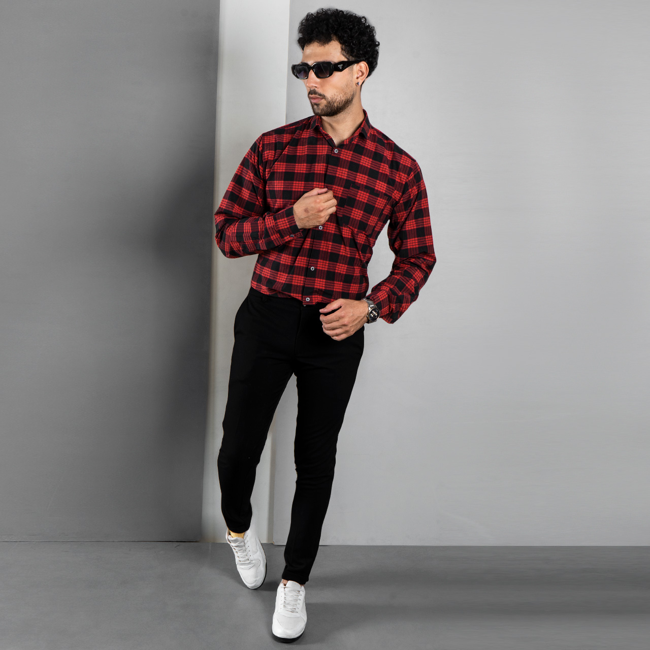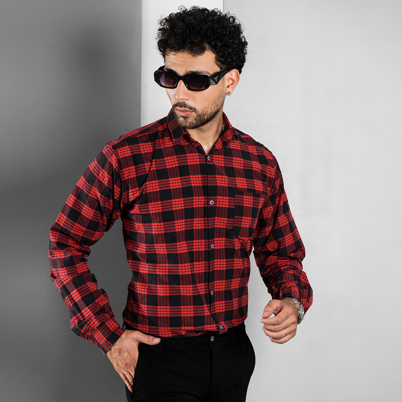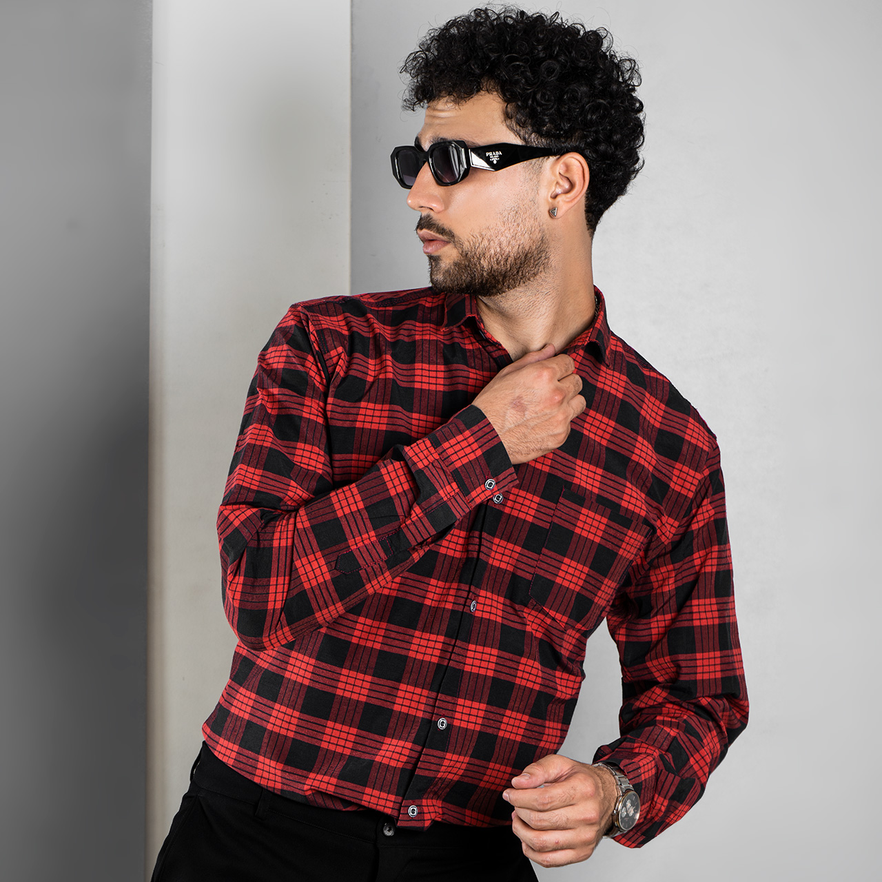 پیراهن چهارخونه مشکی قرمز مدل amir
