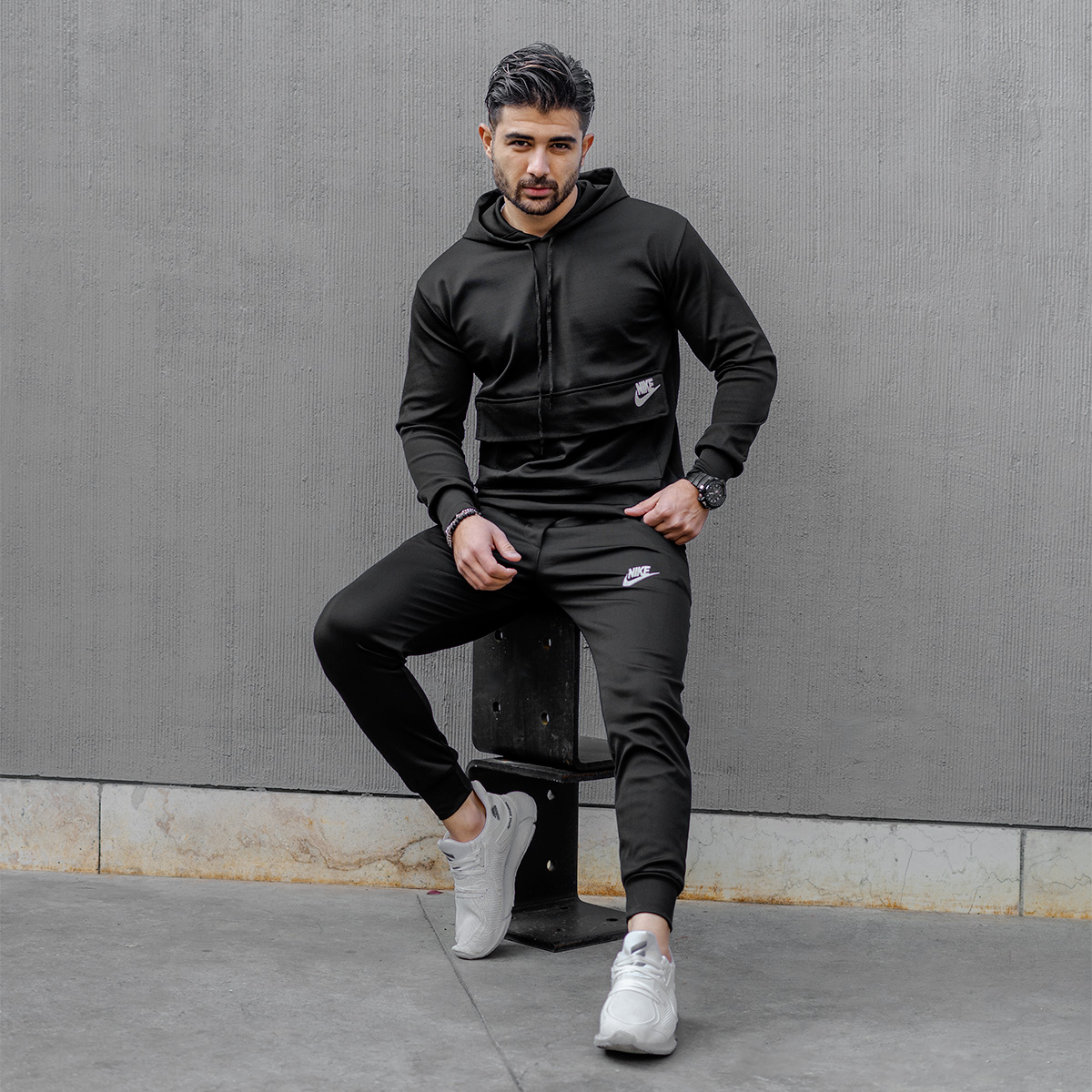 ست هودی شلوار جیب پاکتی نایک مشکی مردانه مدلNIVANO