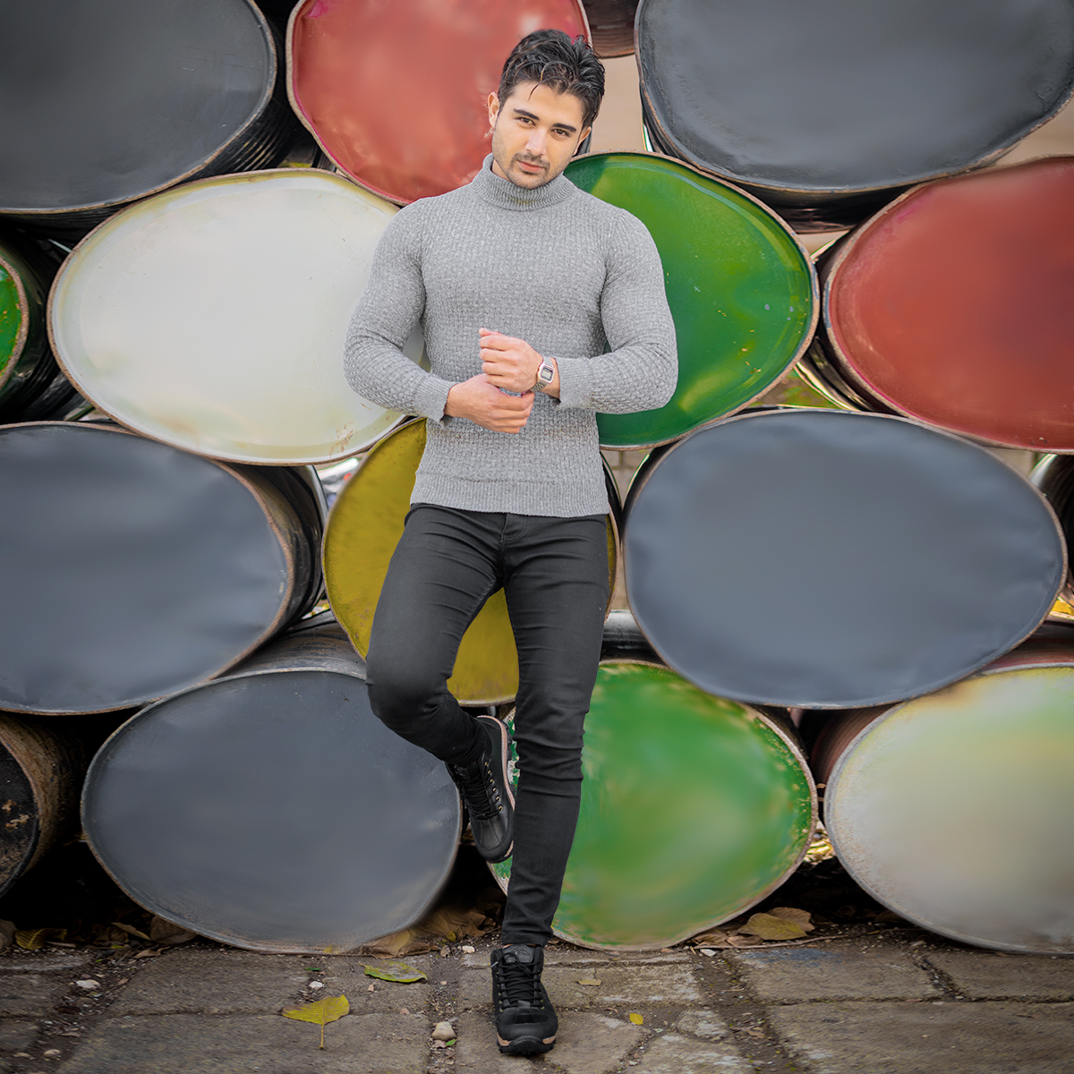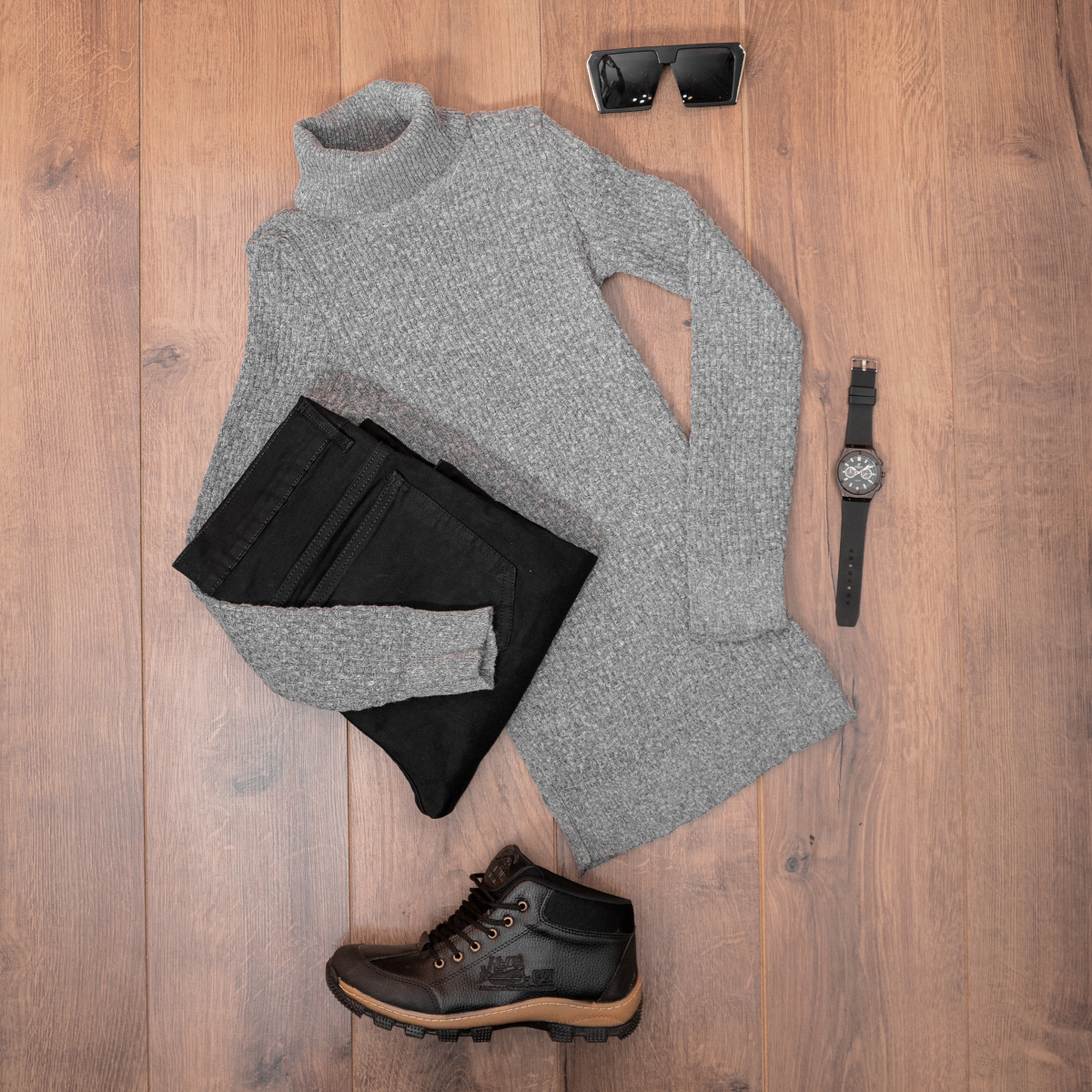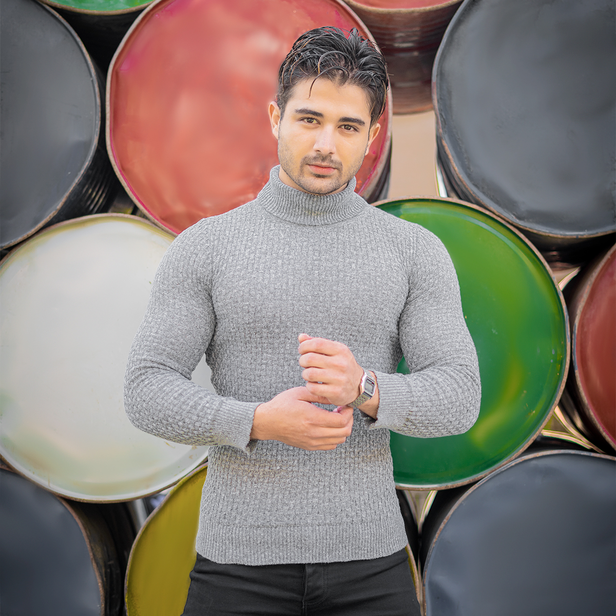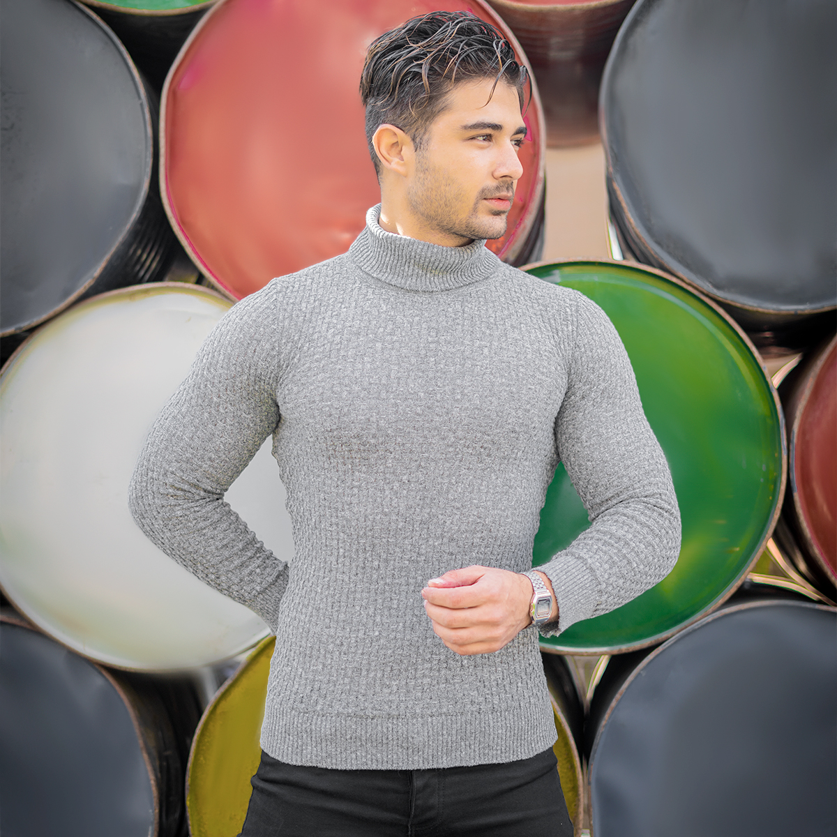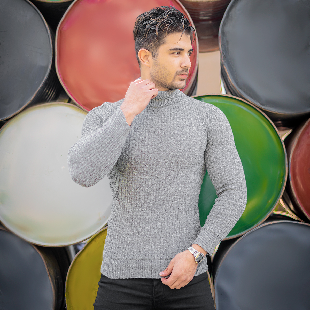 پلیور یقه اسکی مردانه طوسی روشن مدل Oktav