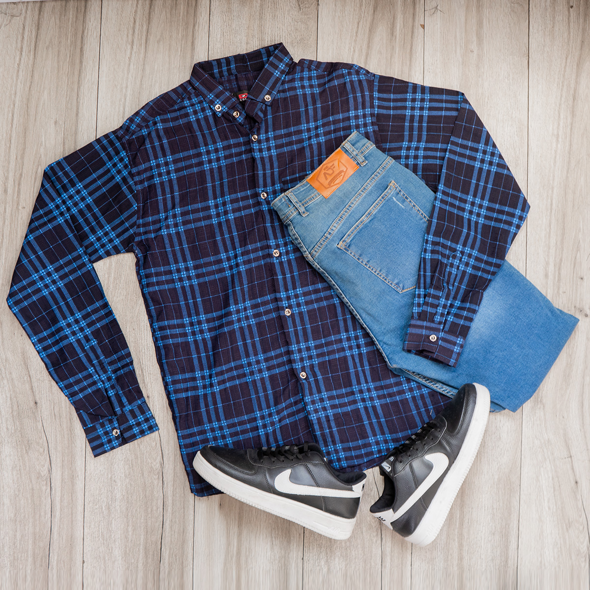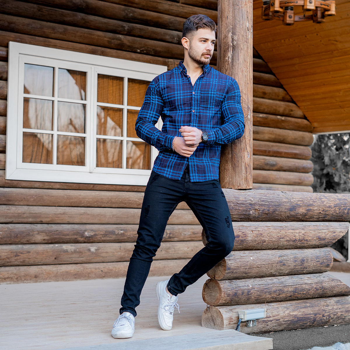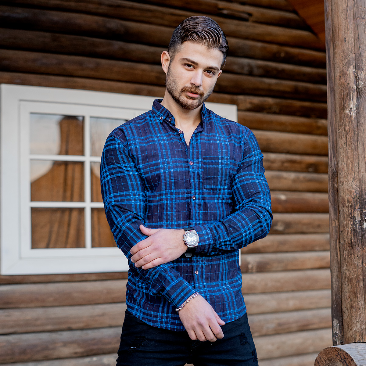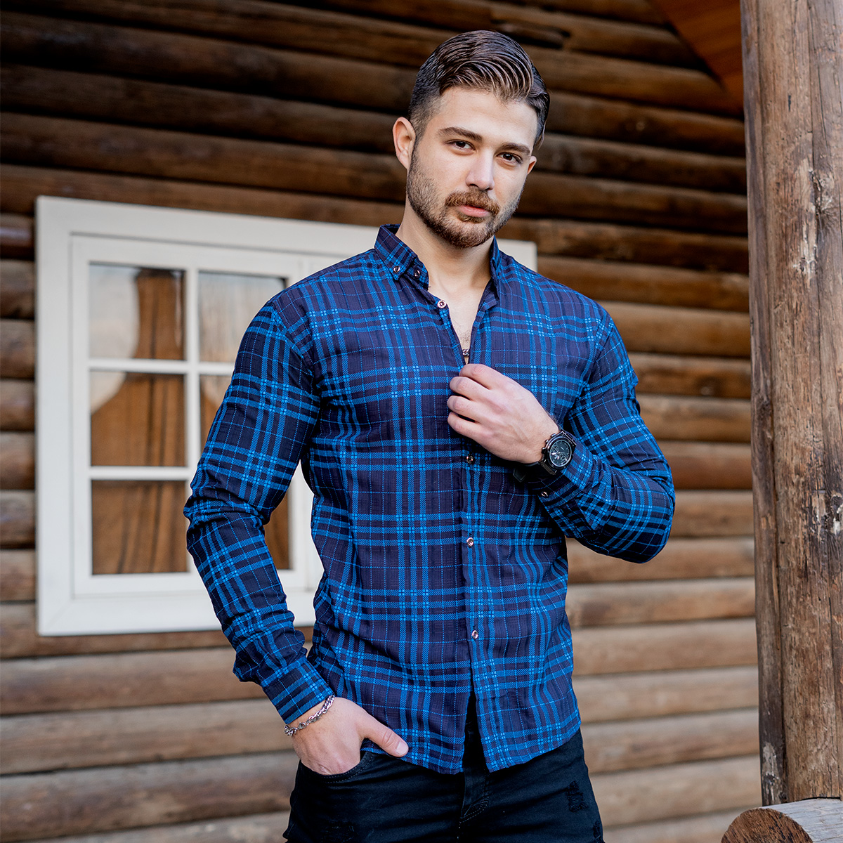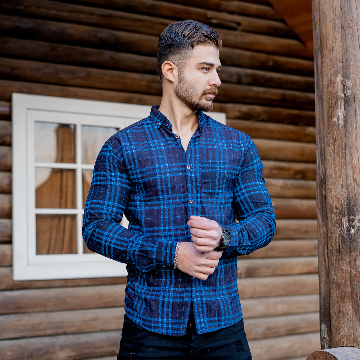 پیراهن چهارخونه مردانه آبی مدل farzam
