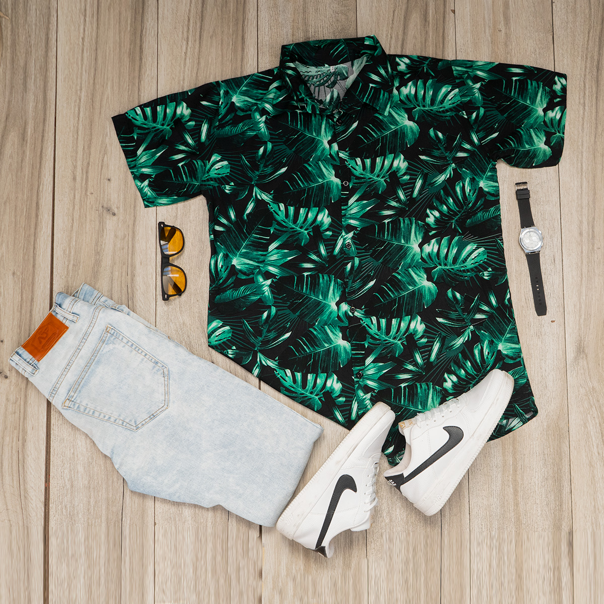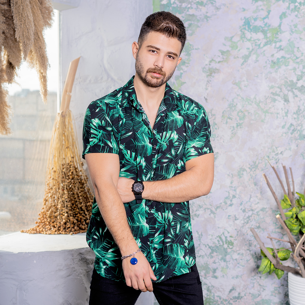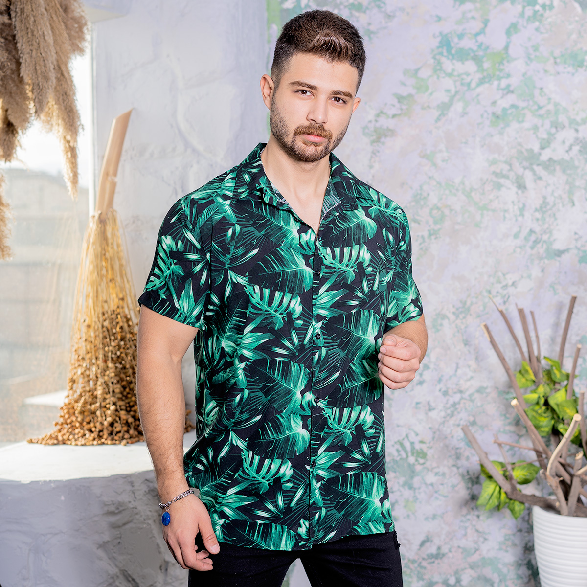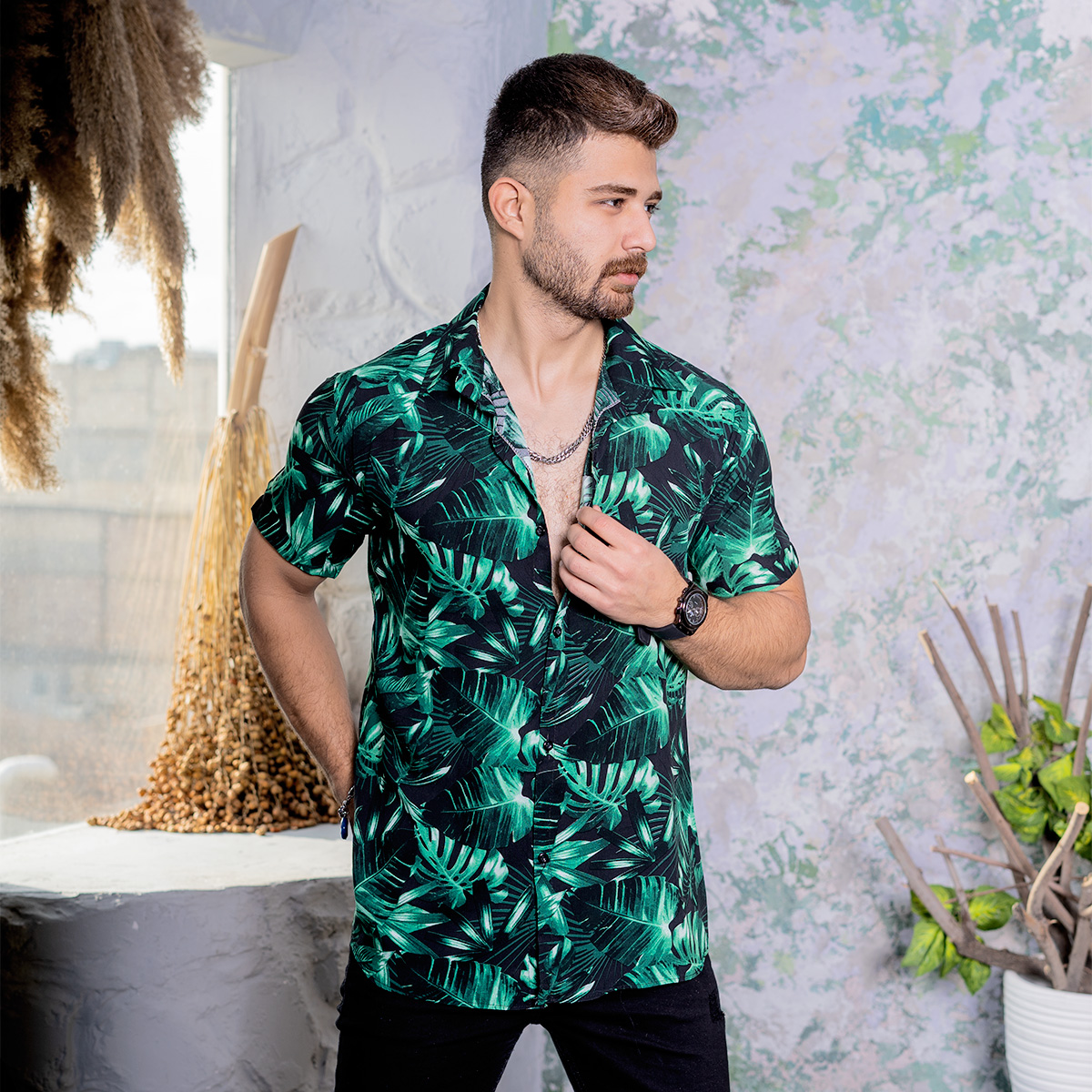پیراهن هاوایی مردانه طرح برگ مدلEdfan