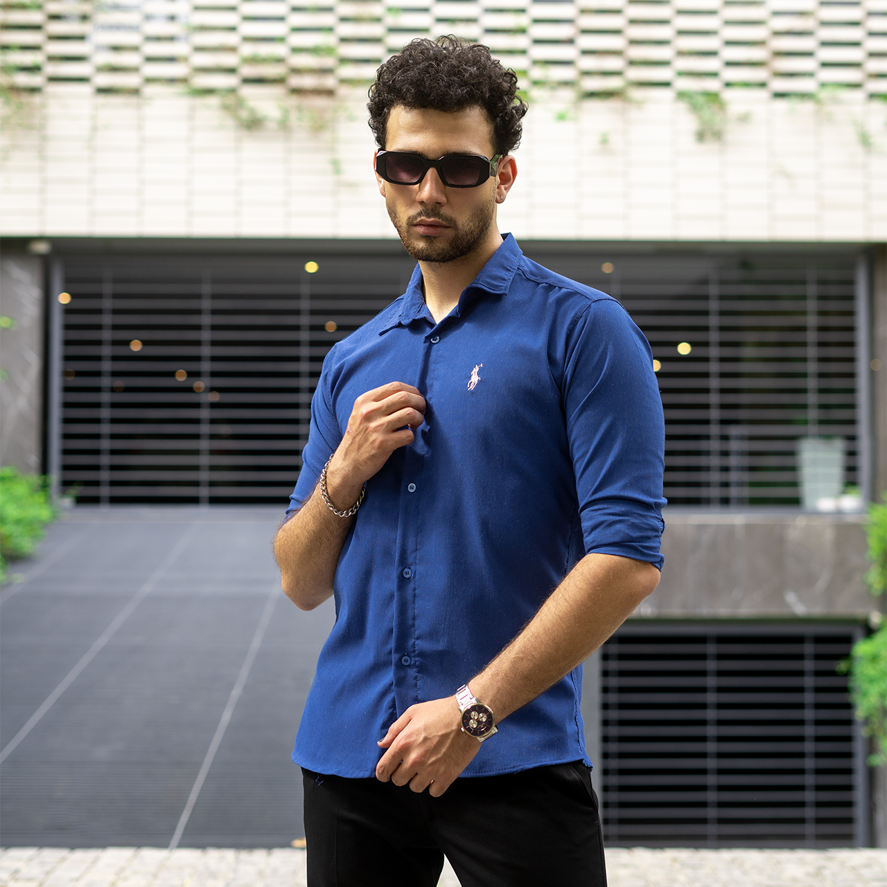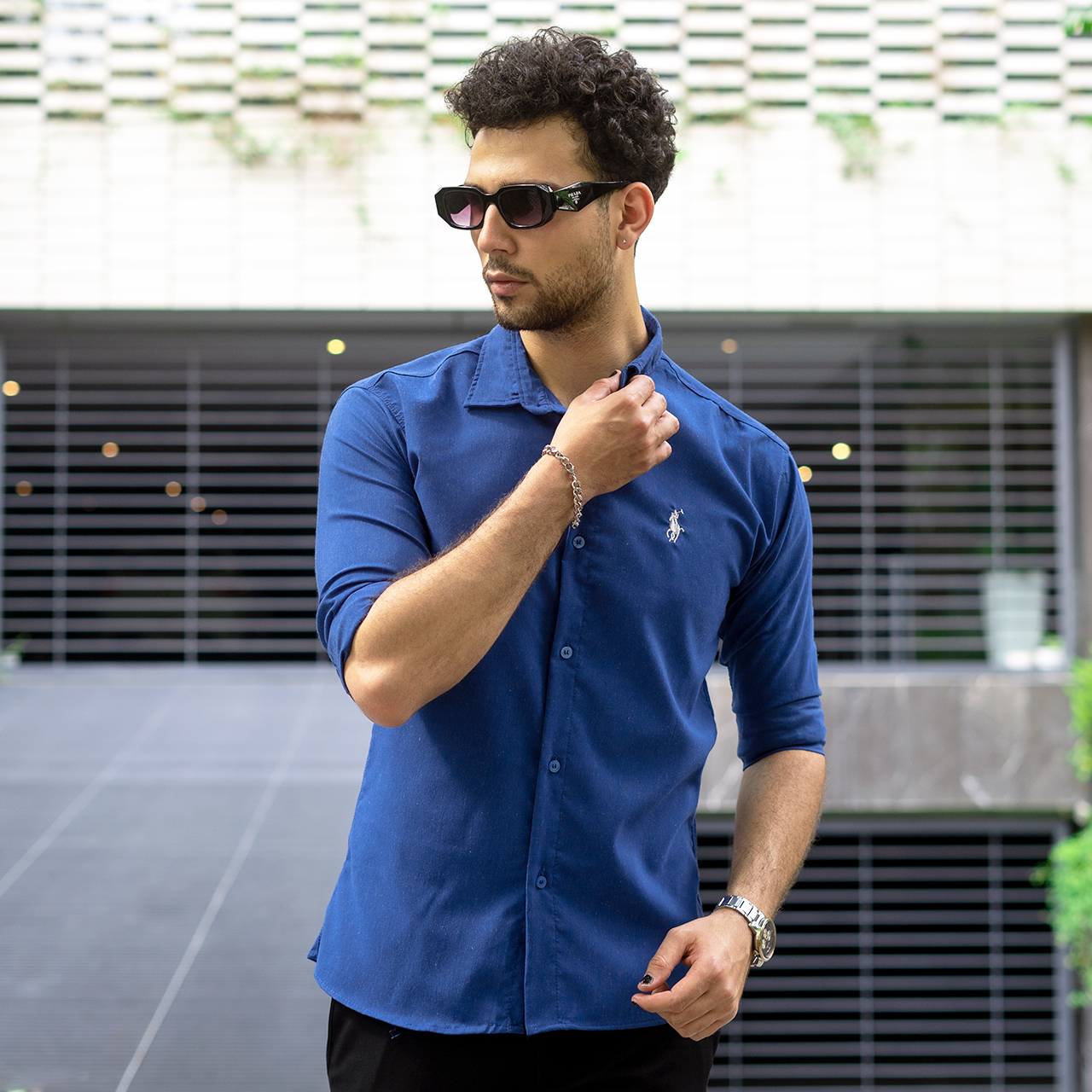 پیراهن مردانه آبی نفتی مدل VQ