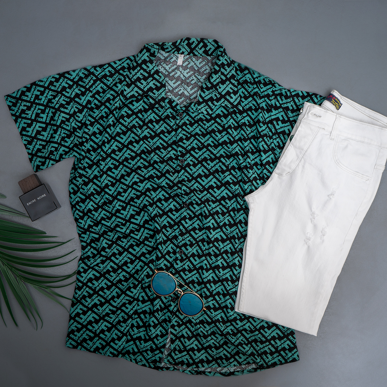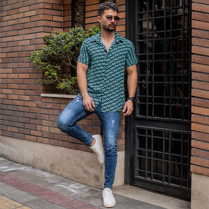 پیراهن هاوایی طرح فندی سبز مردانه مدل F82