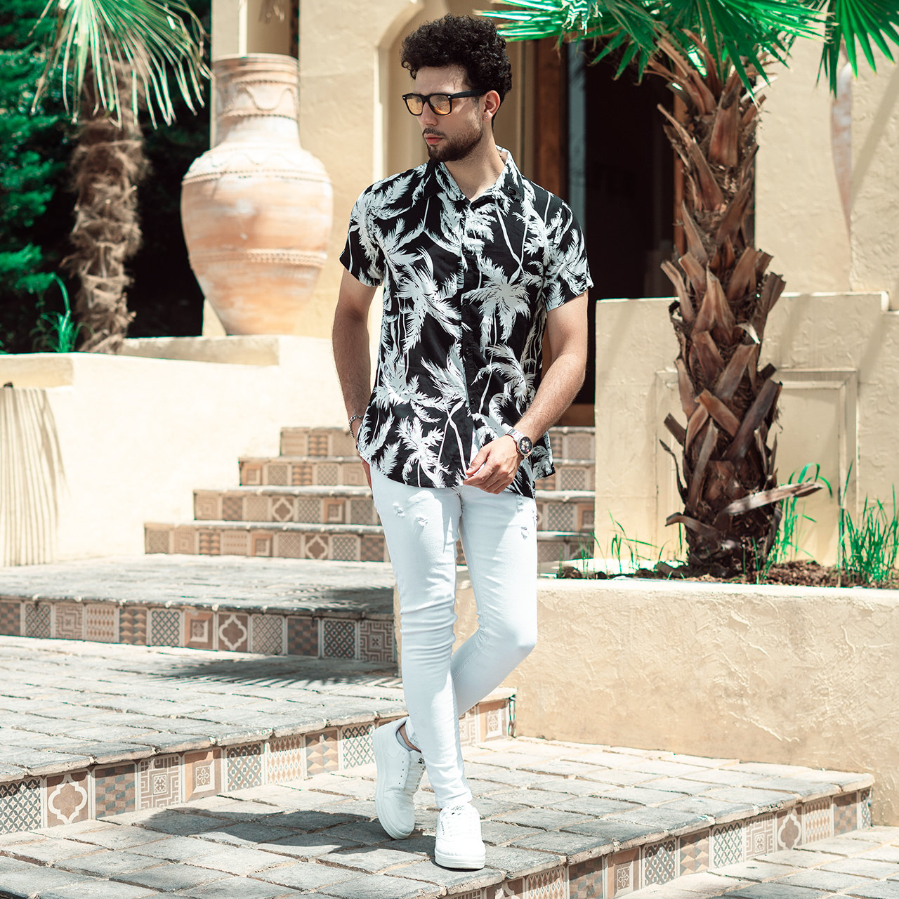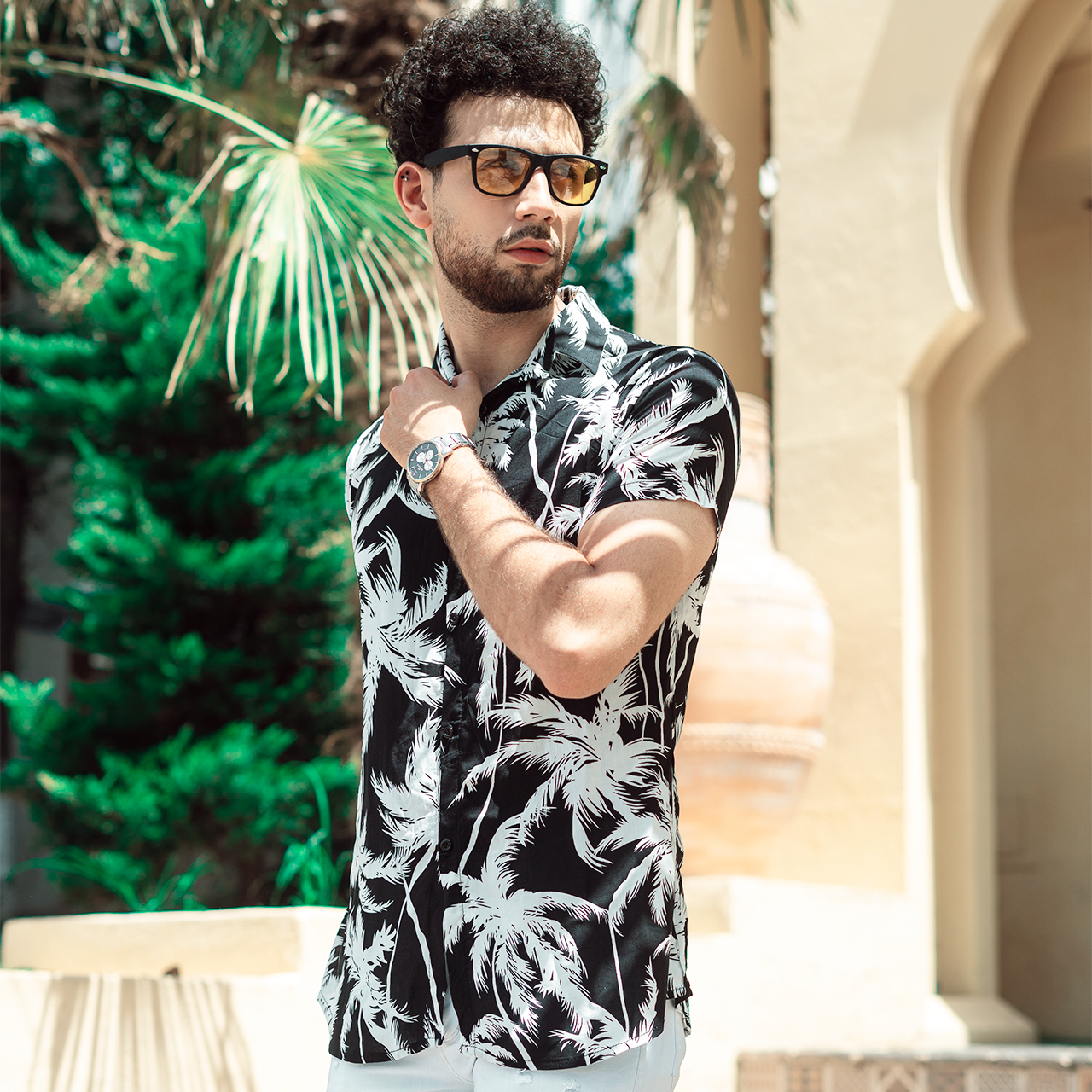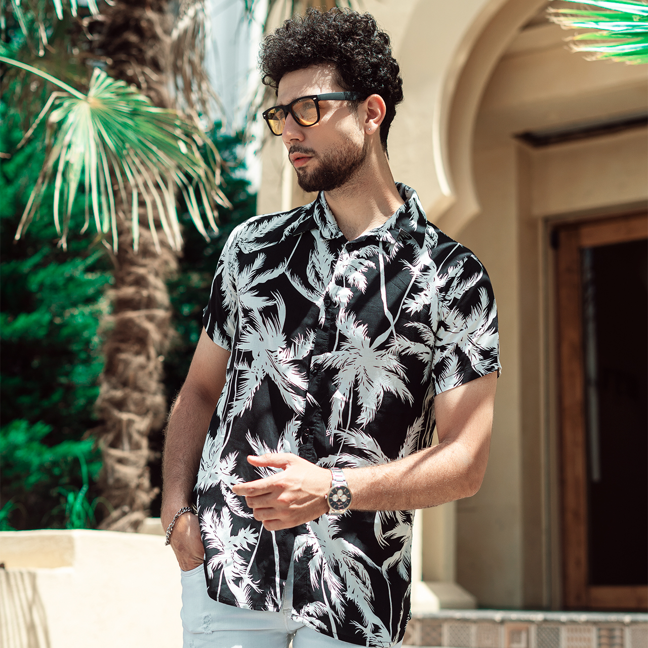 پیراهن هاوایی مردانه طرح نخل مدل TB50