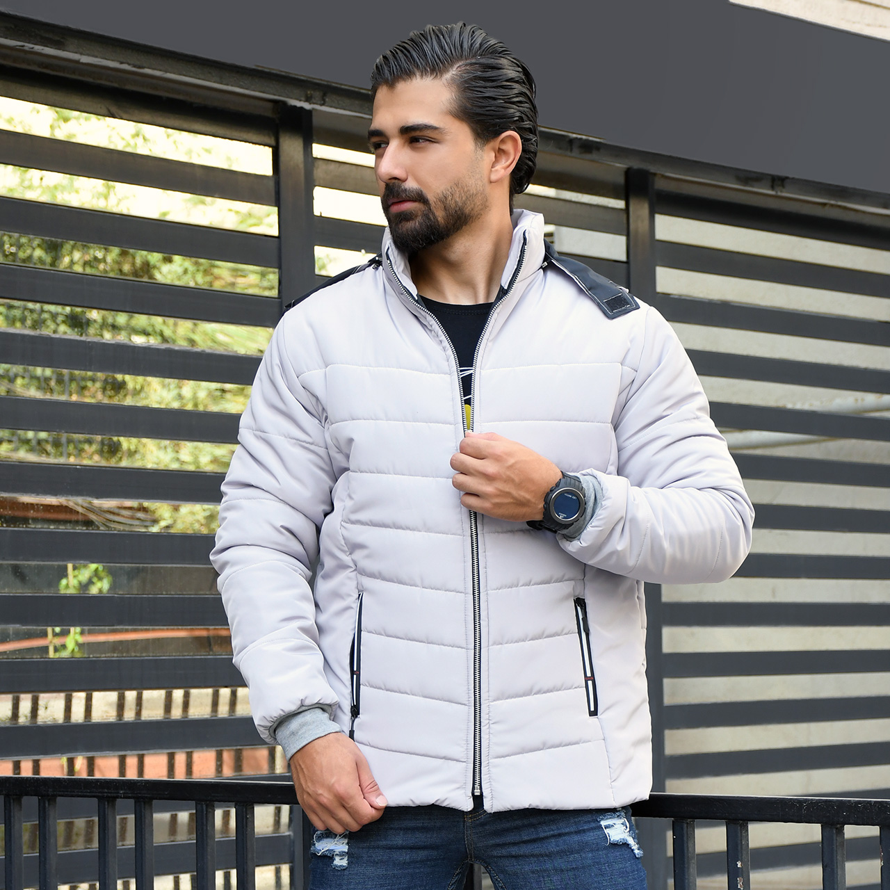 کاپشن مردانه طوسی روشن مدل Aidin