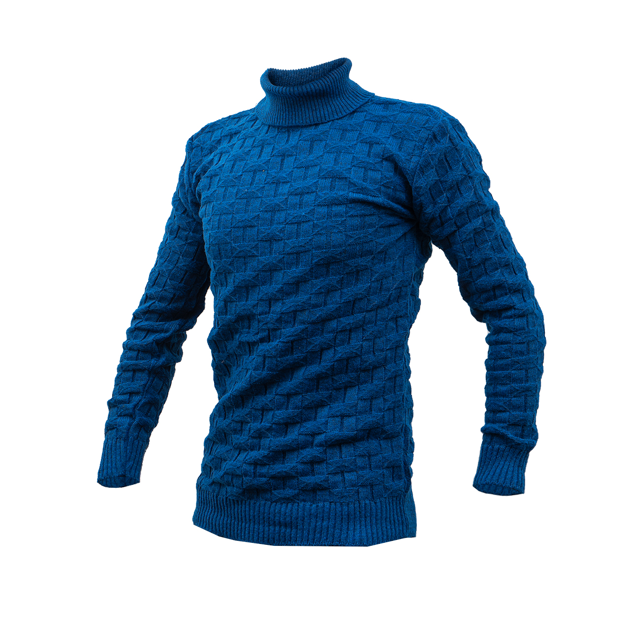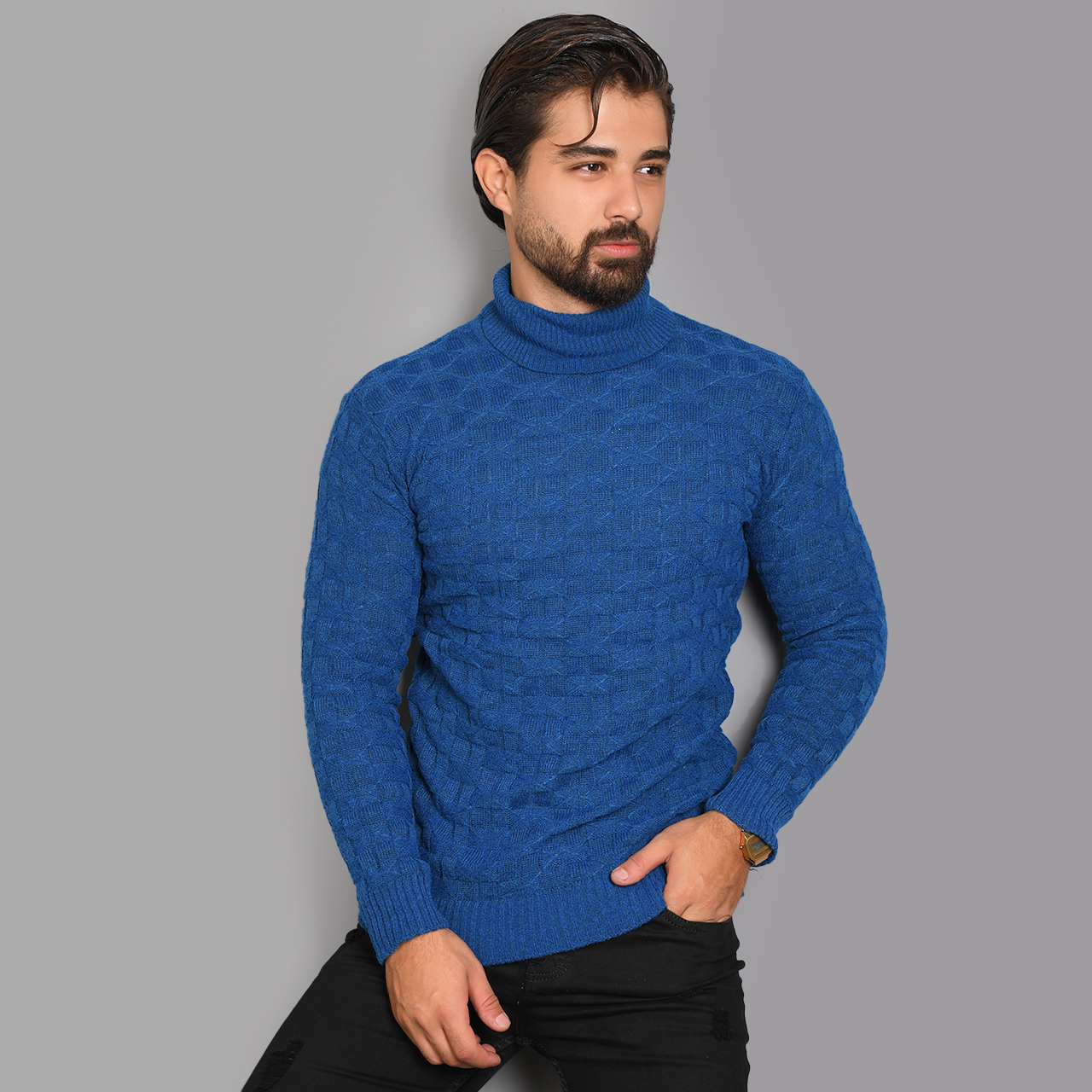 پلیور یقه اسکی آبی طرح لوزی مردانه مدلG10