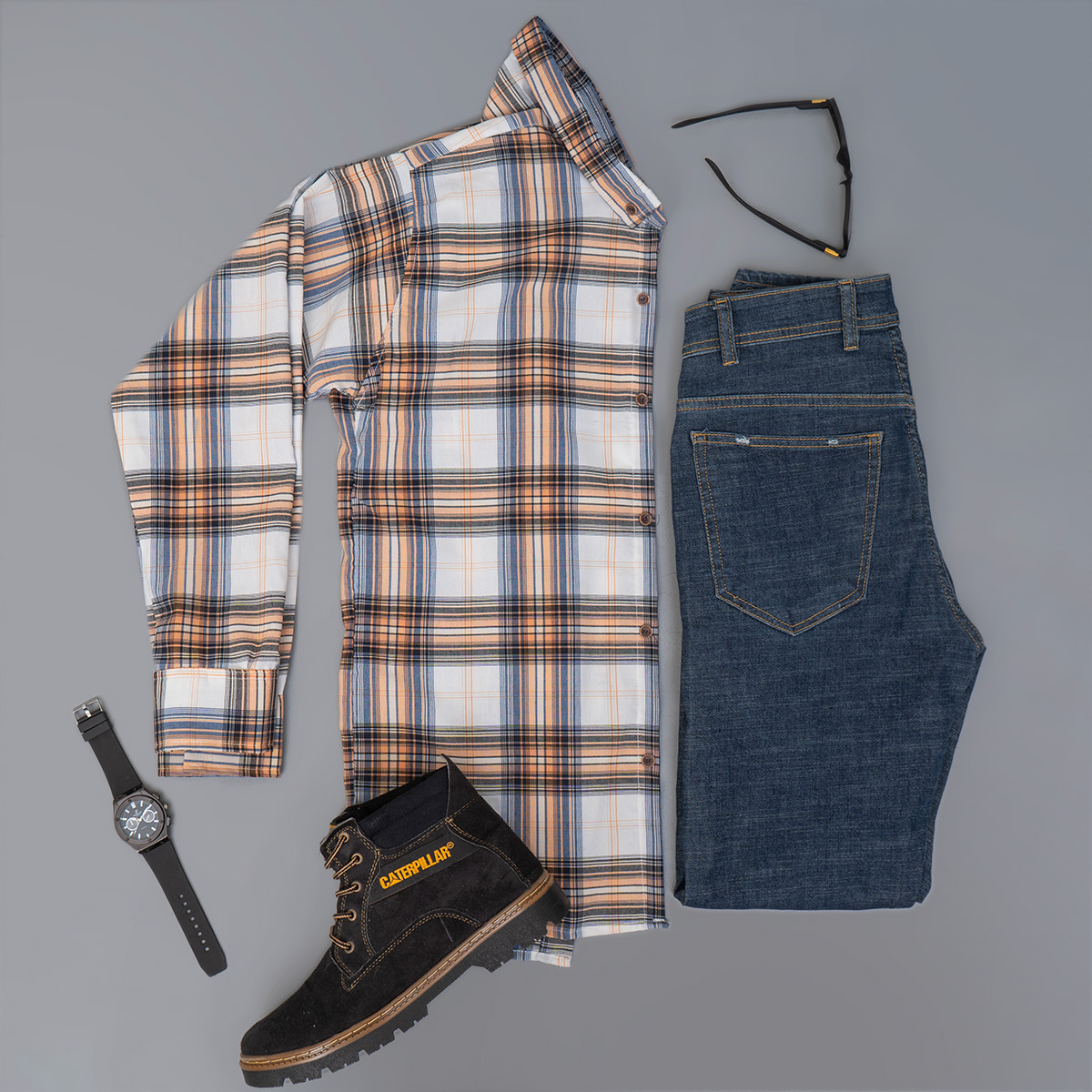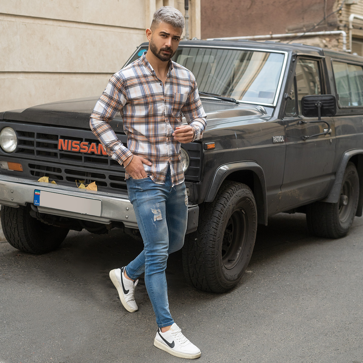 پیراهن مردانه چهارخونه کرم سفیدمدل ahora