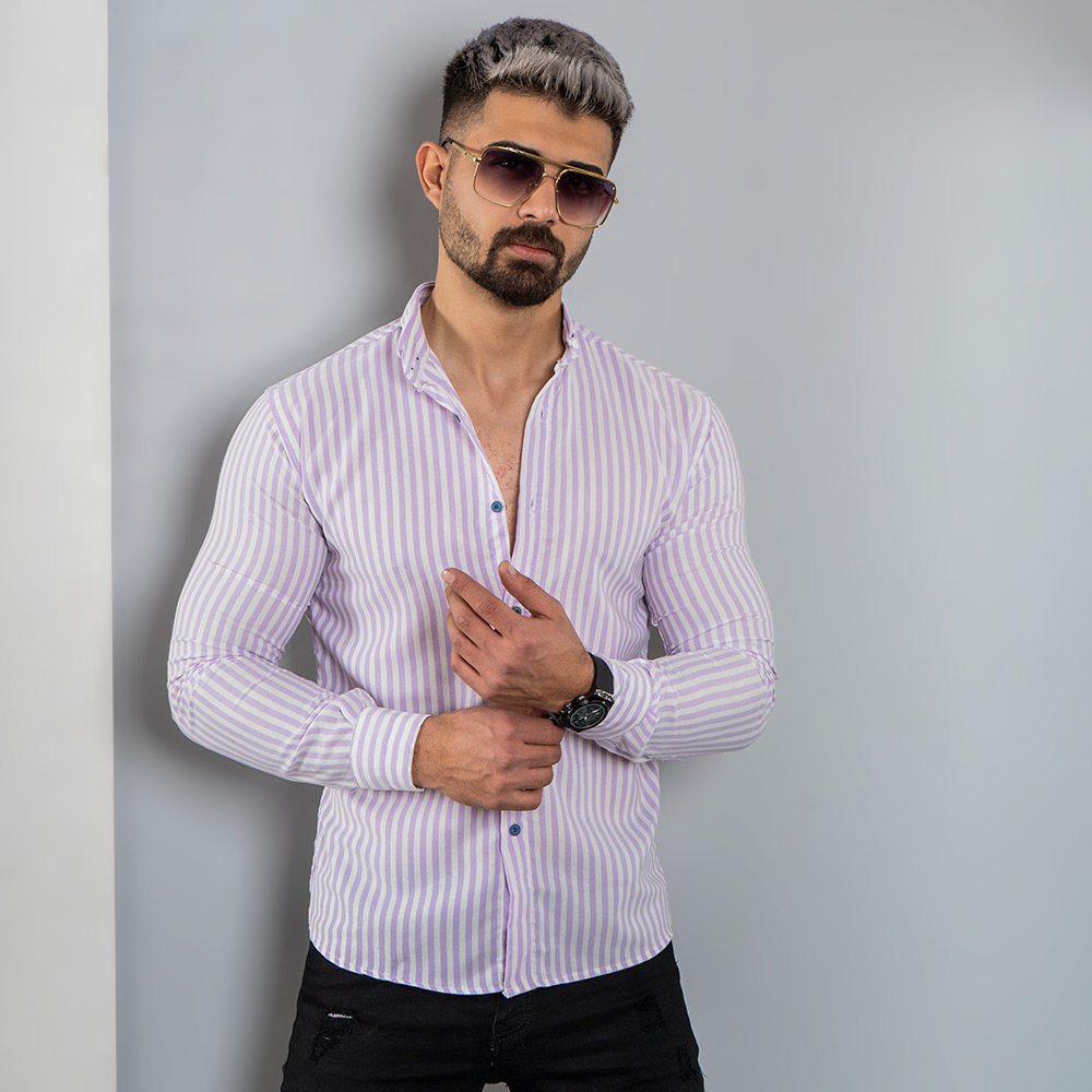 پیراهن راه راه سفید یاسی مردانه مدل HAMED