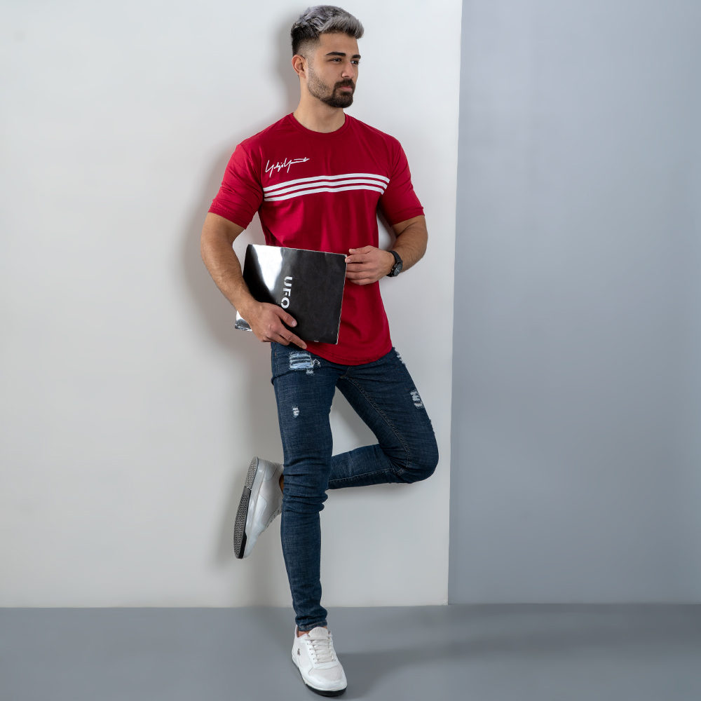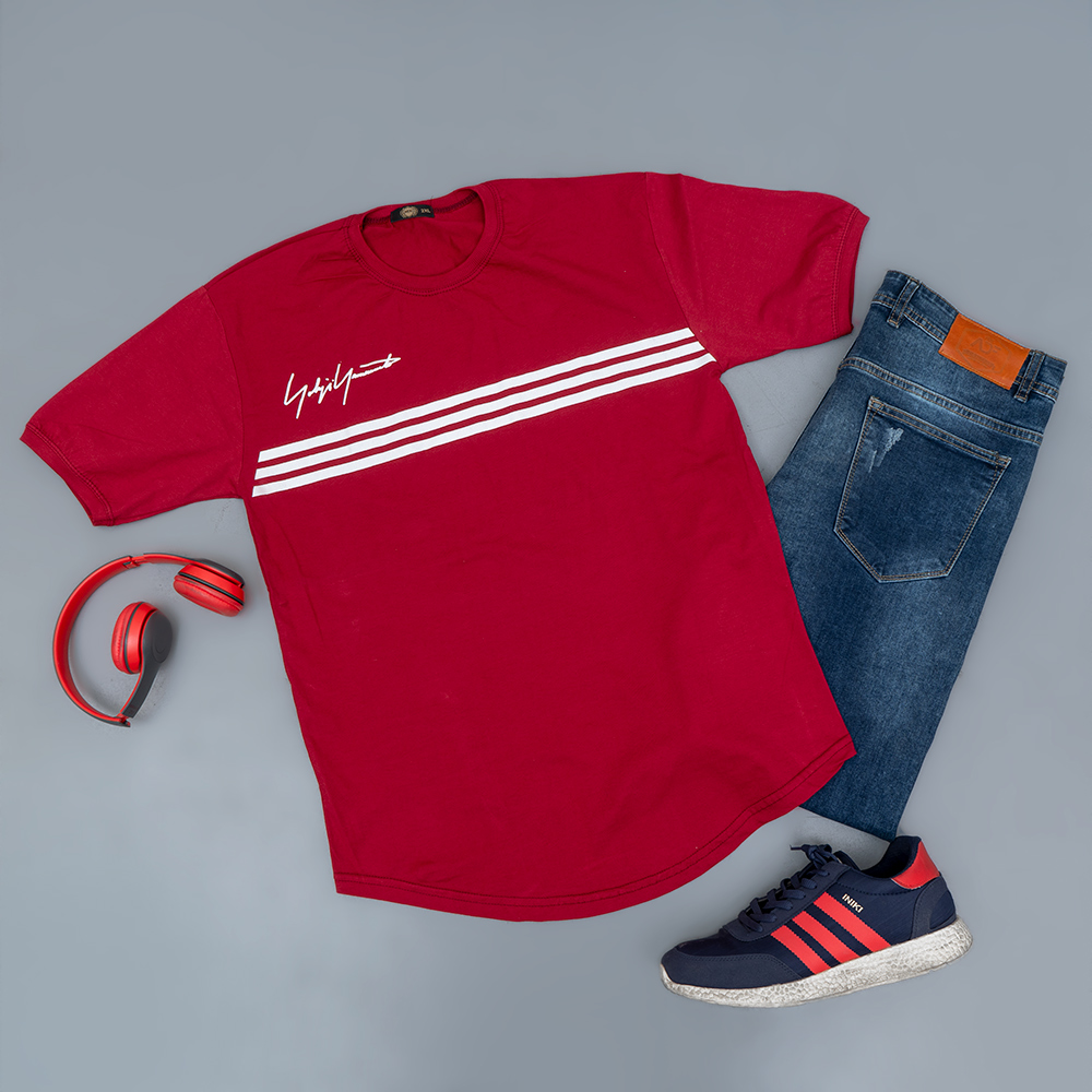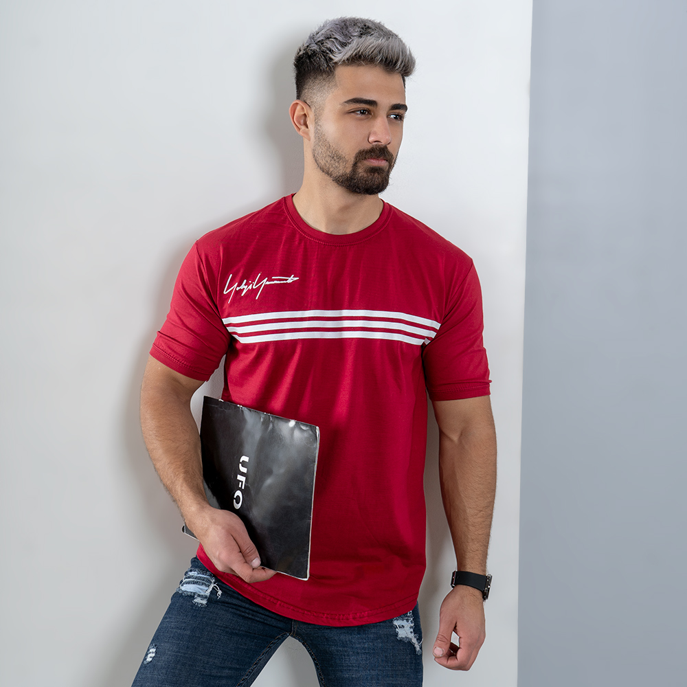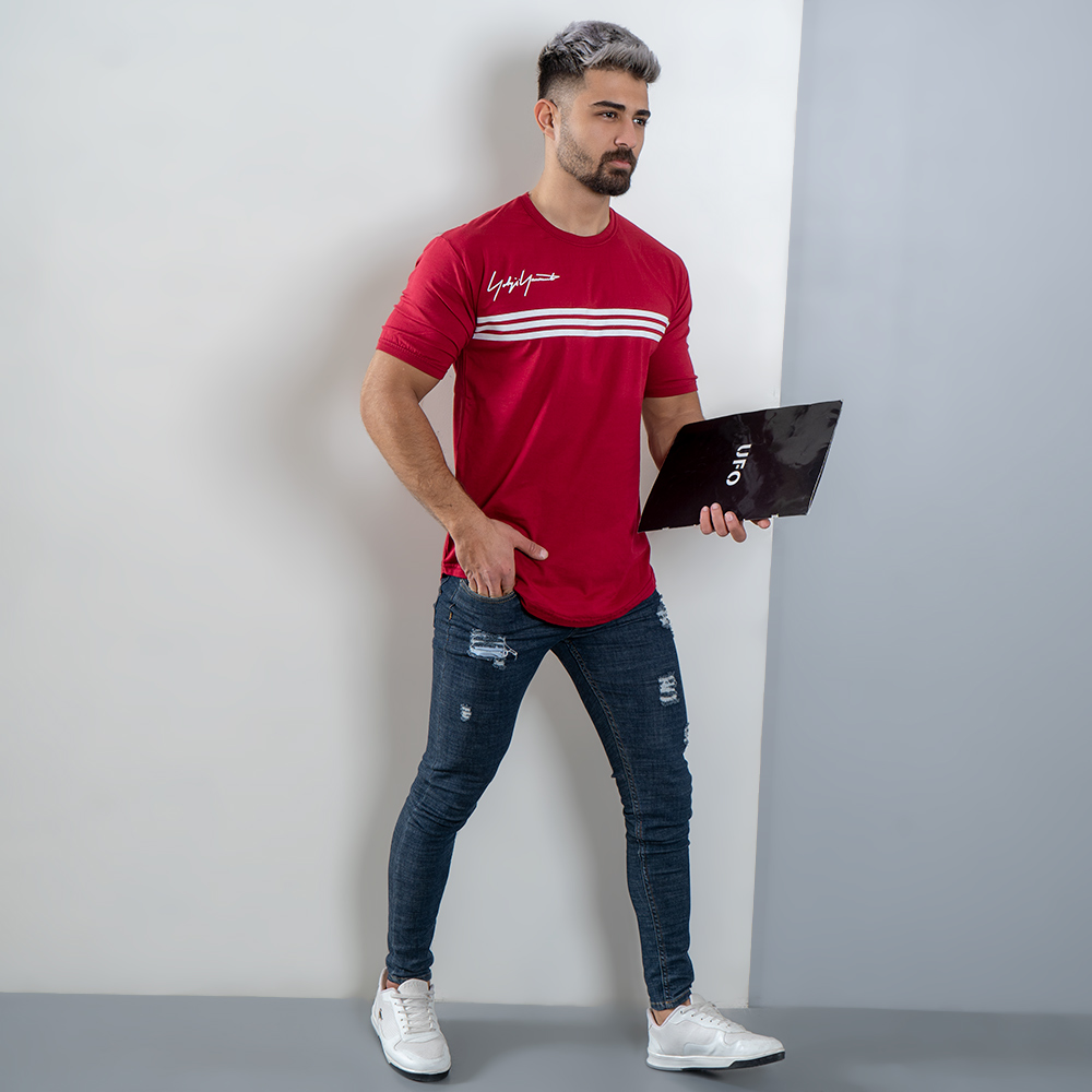 تیشرت مردانه سه خط زرشکی مدل DENVER