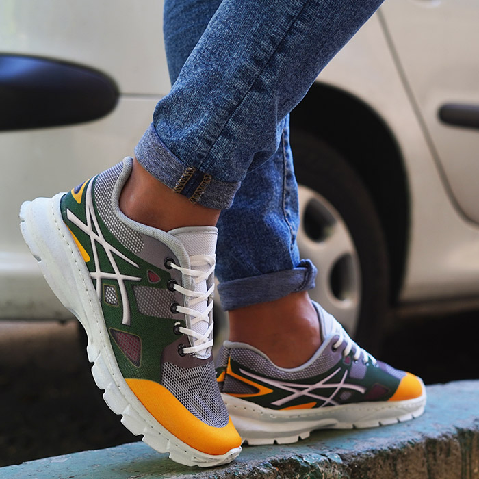 کفش ورزشی مردانه اسیکس نارنجی سبز ( T)مدل evino