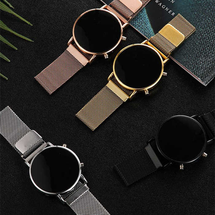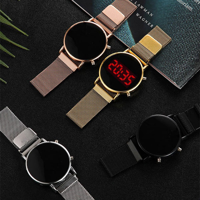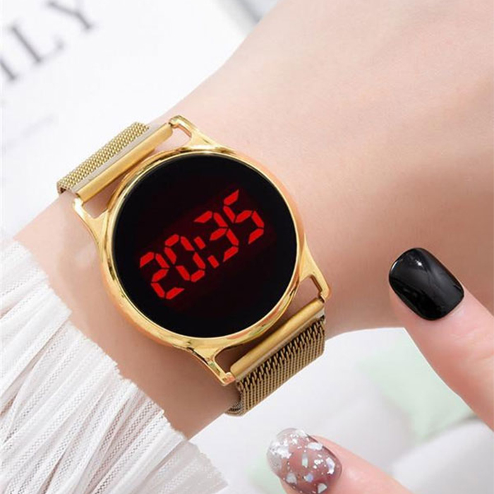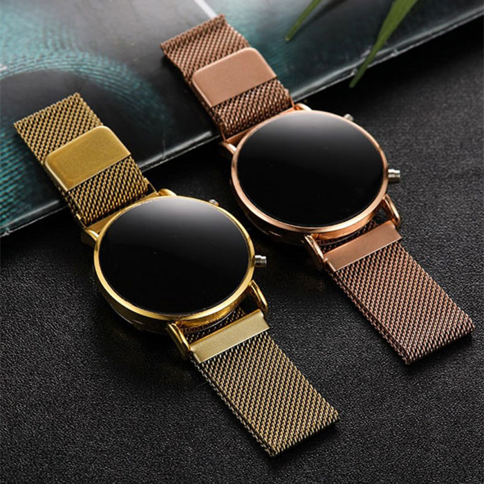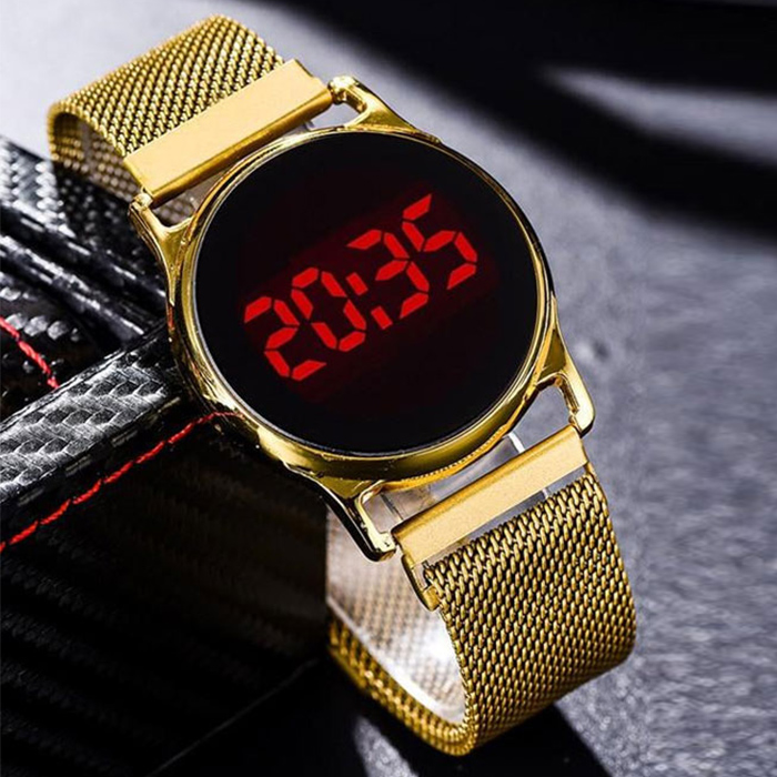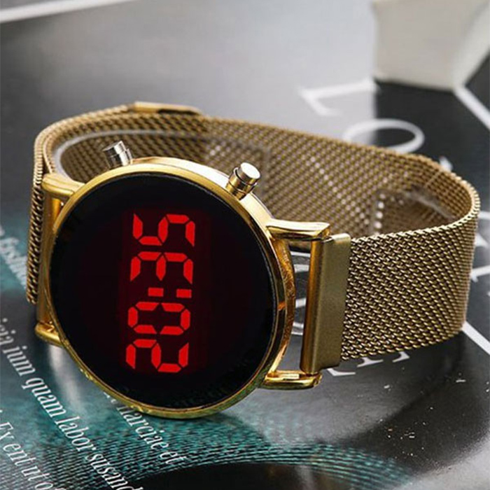 ساعت LED بند فلزی طلایی مدل Ronas