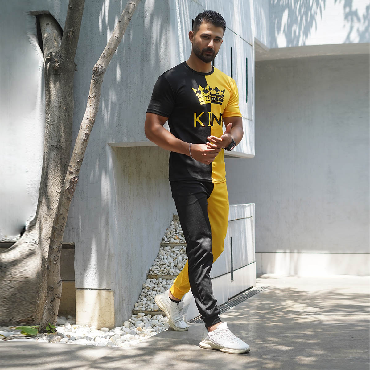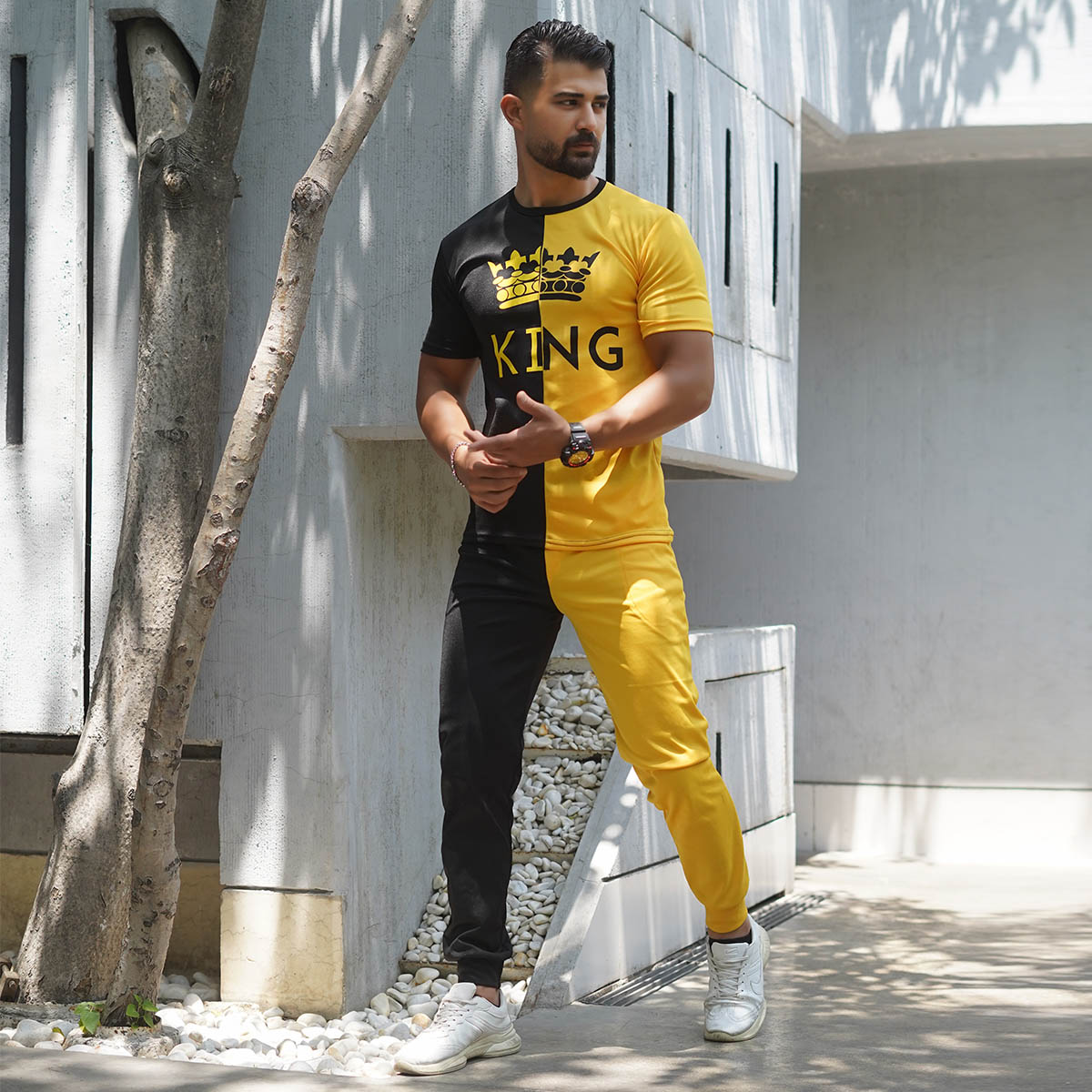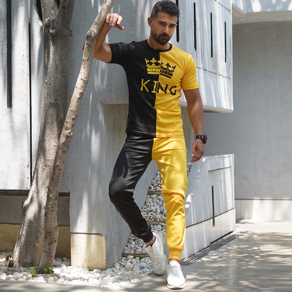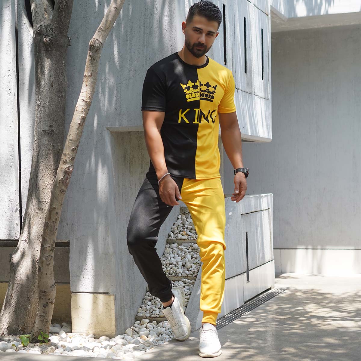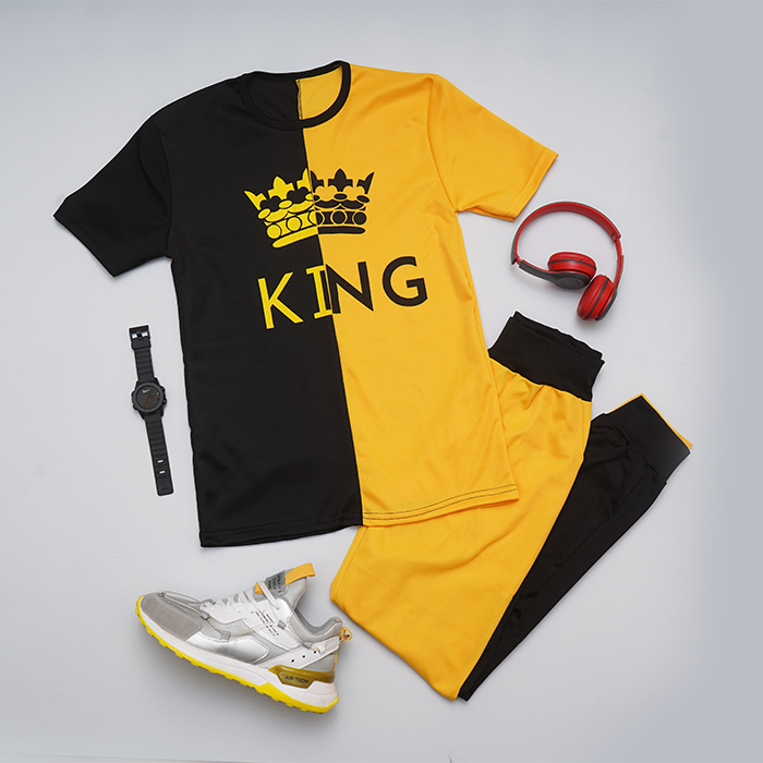ست تیشرت شلوار مشکی زرد مدل Shahsan