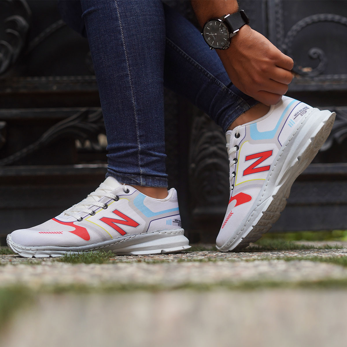 کفش ورزشی (T) سفید قرمز نیوبالانس مردانه مدل Varan