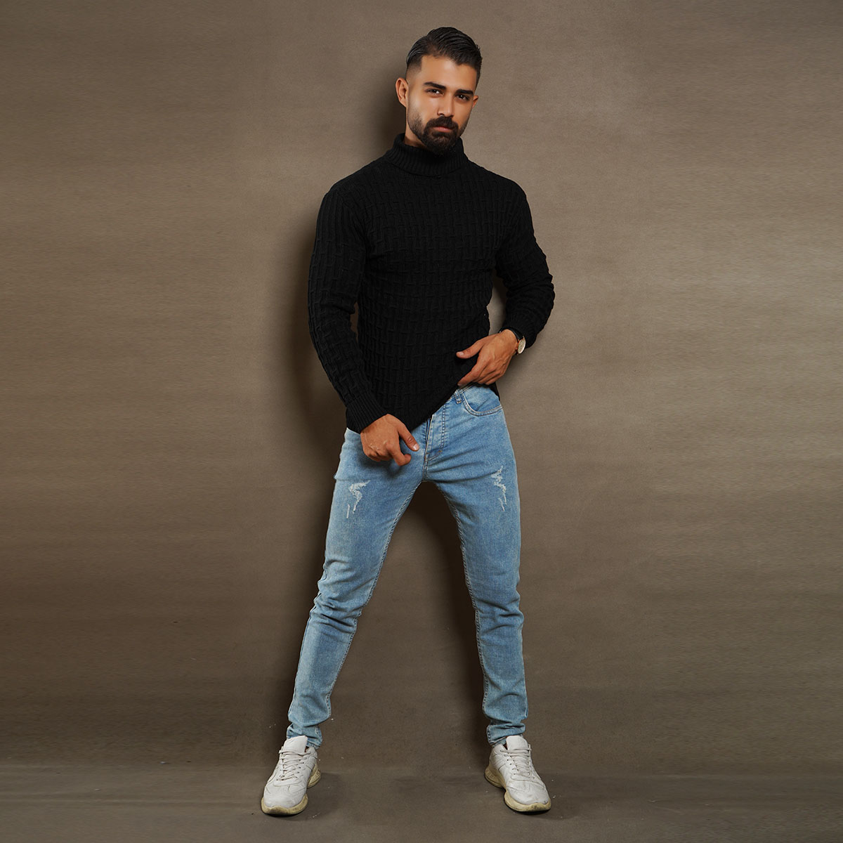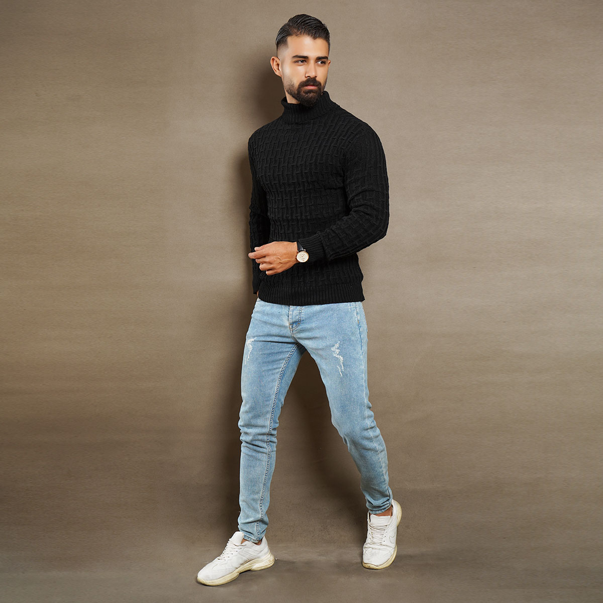 پلیوربافت مردانه مشکی یقه اسکی مدل Arad