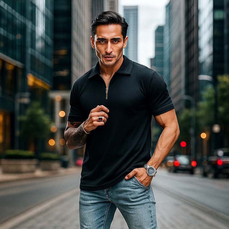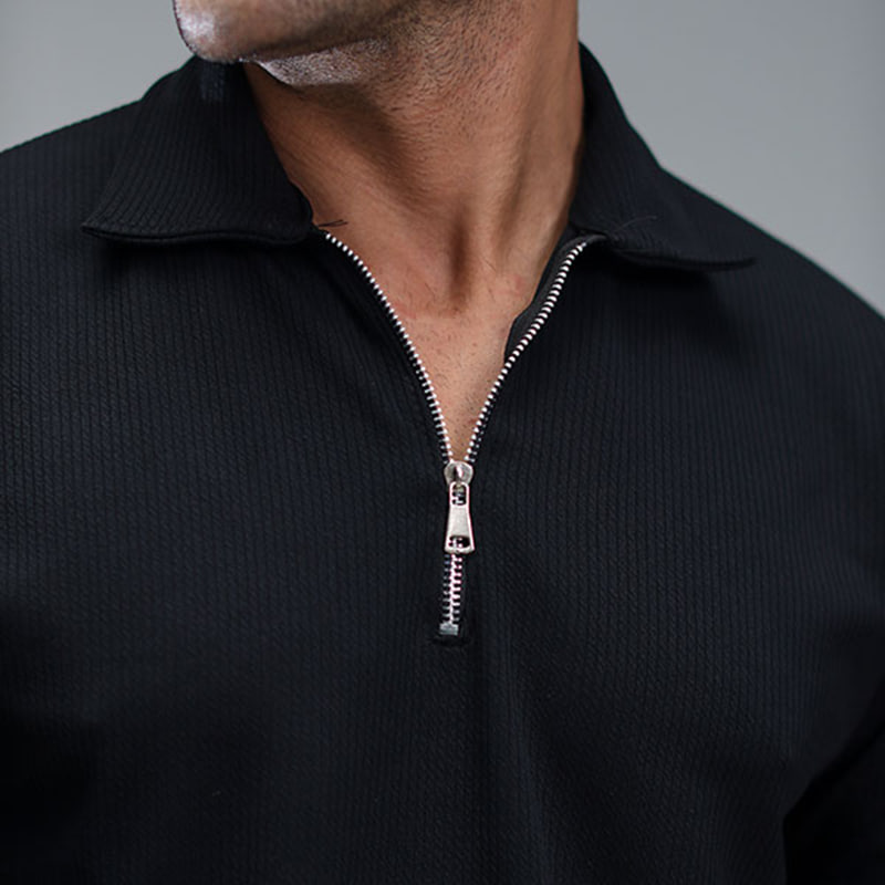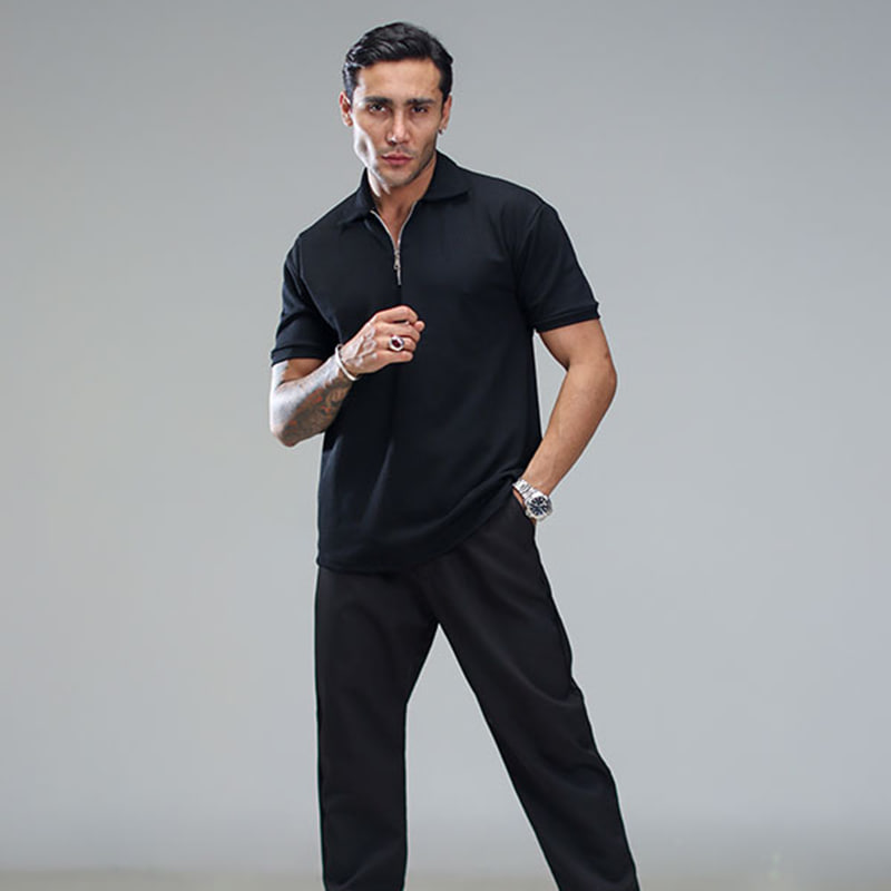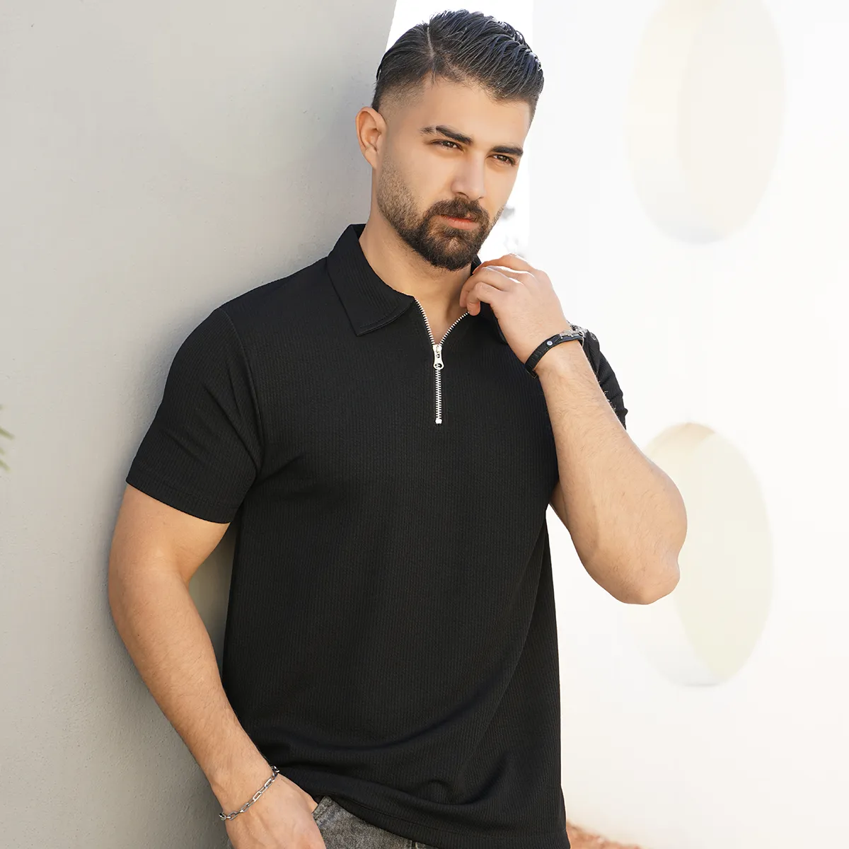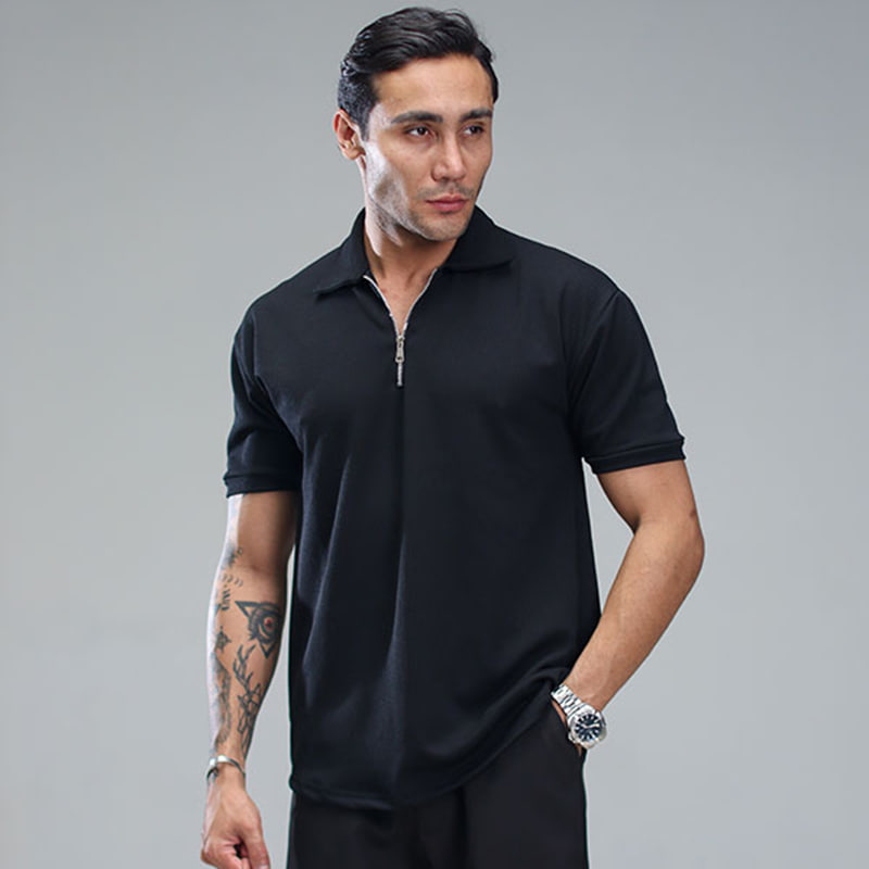 تیشرت مردانه یقه زیپ دار مشکی مدل Arban