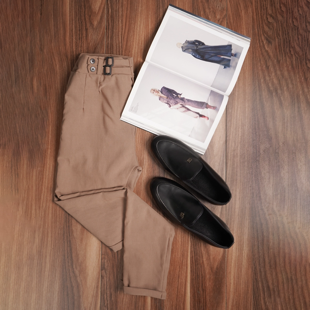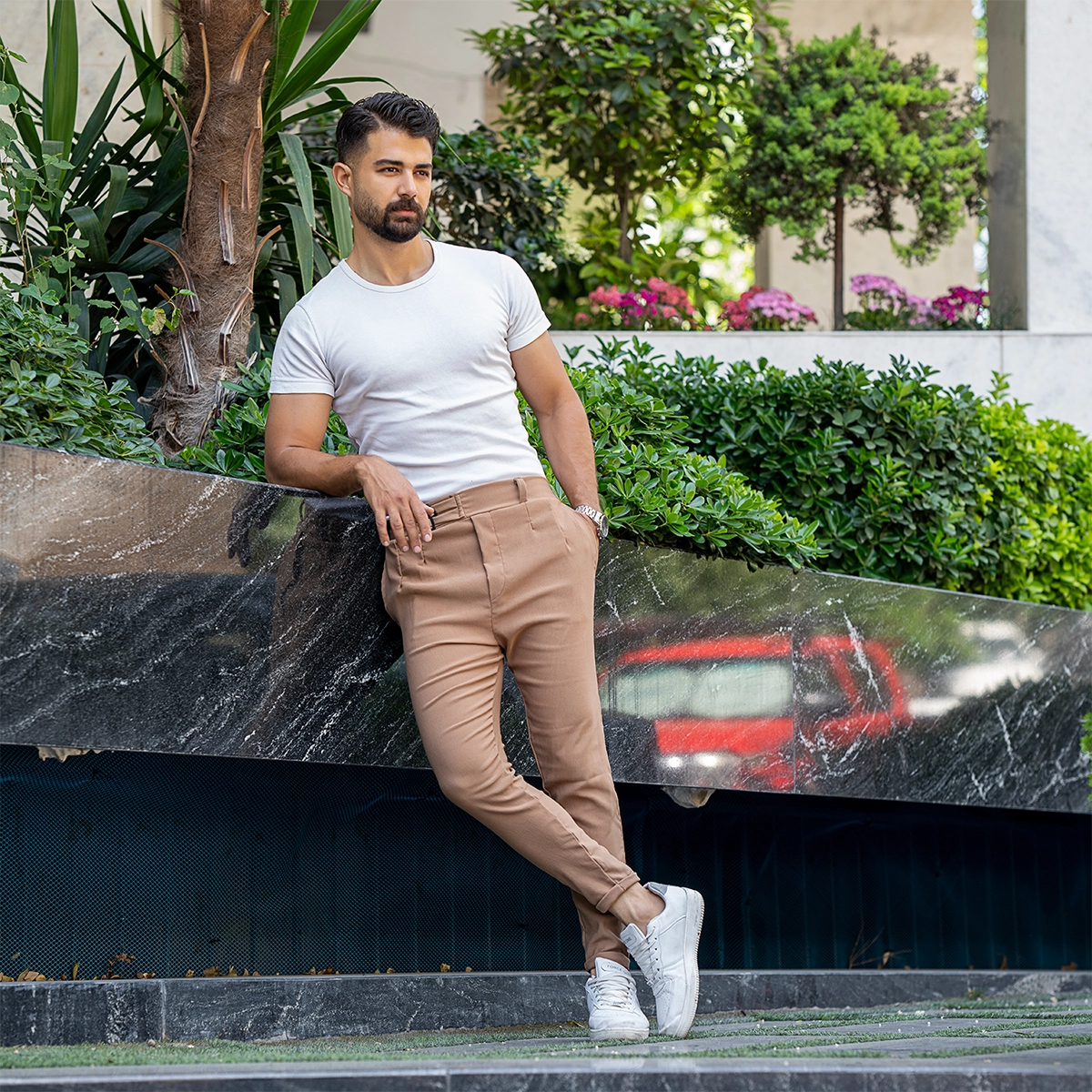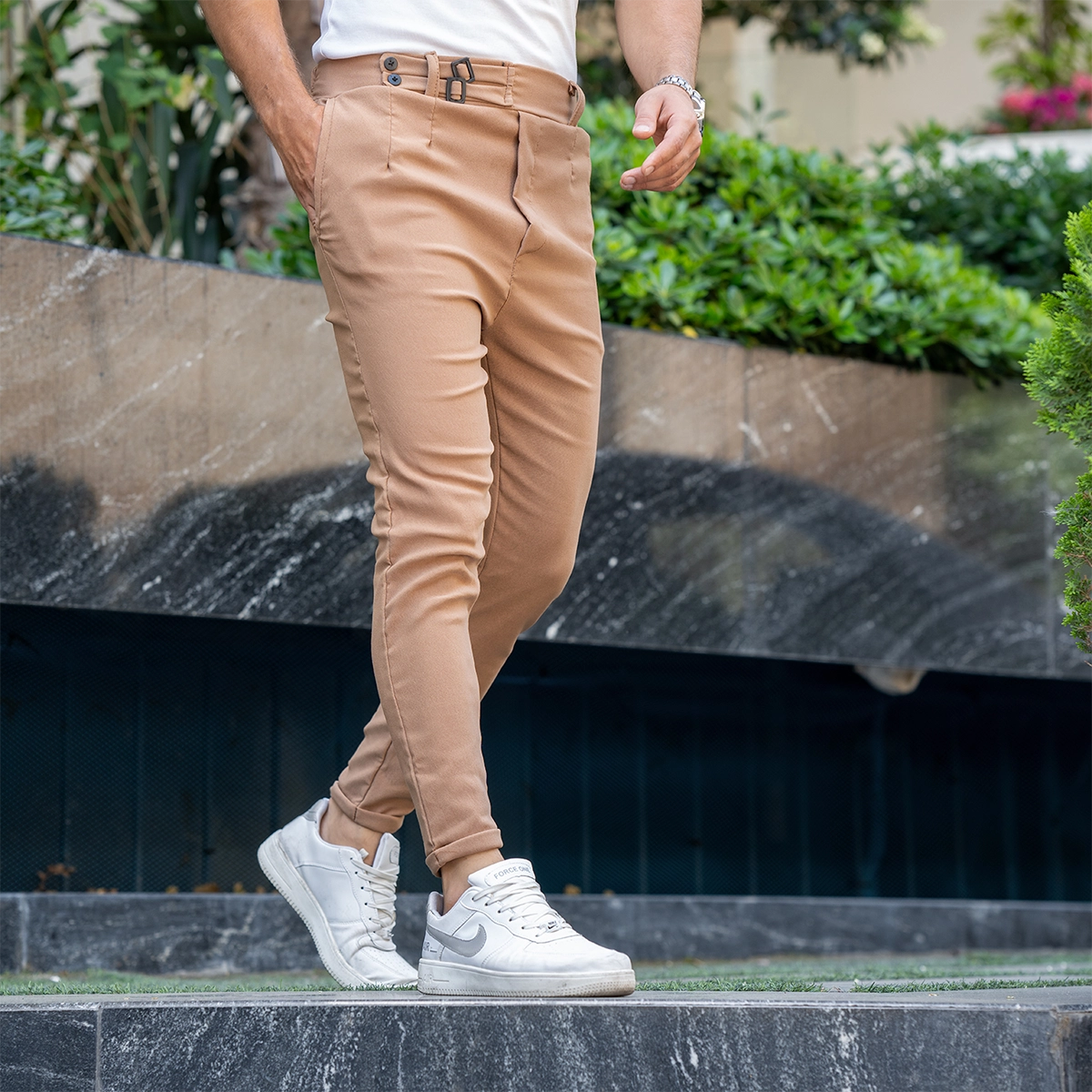 شلوار مردانه کرم دو دکمه دو سگک مدل kyanosh