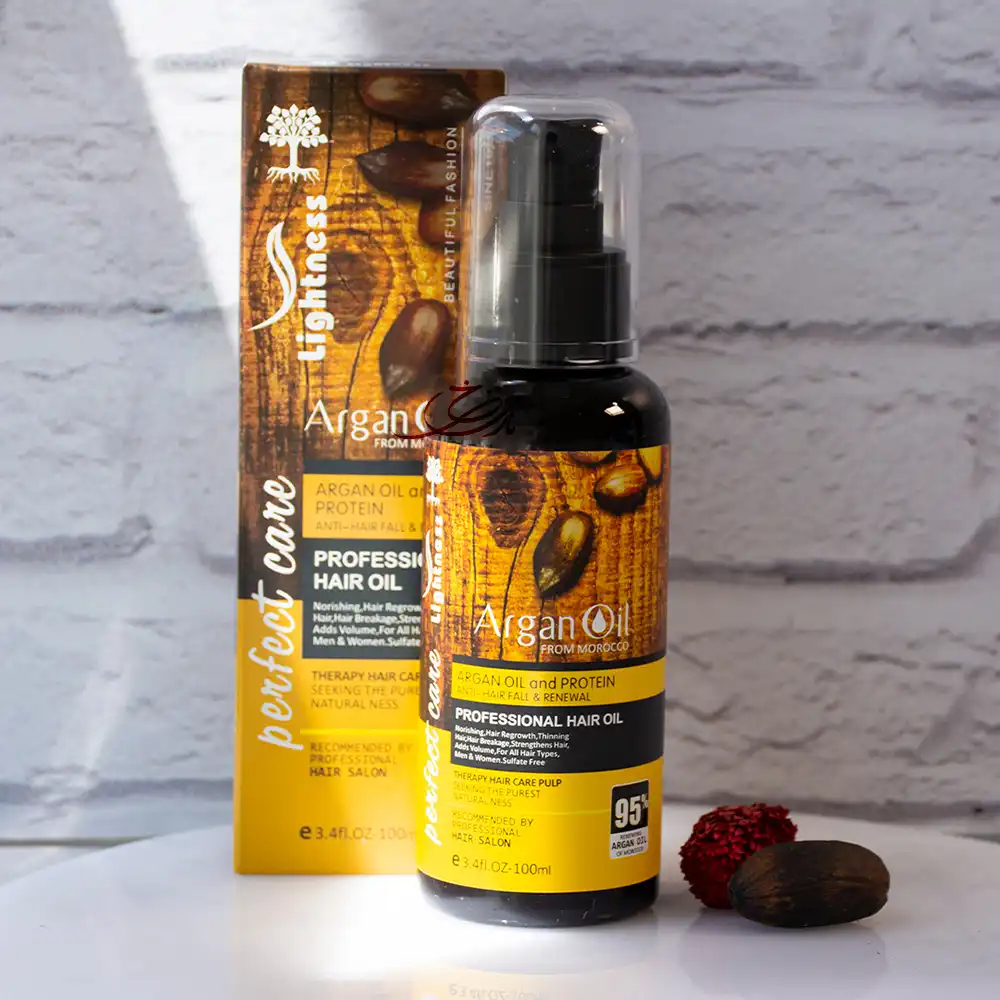 روغن مو آرگان لایتنس همانطور که میدانید حاوی 95% آرگان اورجینال و پروتئین میباشد که از ریزش و آسیب مو ها جلوگیری کرده و همچنین موجب رویش مجدد مو ها میشود. روغن مو لایتنس فاقد سولفات بوده و علاوه بر پروتئین و روغن آرگان درواقع حاوی ترکیباتی نظیر؛ کراتین، پارفین، گلیسیرین و روغن لیمو میباشد. این ترکیبات به دلیل داشتن خواص آنتی اکسیدانی، تقویتی و ضد باکتریایی، سبب افزایش رشد مو ها و نرم شدن آنها و چربی و مرطوب نگه داشتن تارمو ها میشود. به علاوه، گلوتامیک اسید موجود در این روغن مو نوعی آلفا آمینو اسید میباشد که از ترکیبات لازم و واجب برای رشد متداول مو بوده و موجب سنتز پروتئین و چربی شده که مانع از ریزش بیشتر موها میشود و نقش مهمی در سالم سازی موها ایفا میکند. این روغن مو فرمول و عملکرد بسیار فعال و پرو ویتامین B5 تار موهارا در تمام طیف خود درگیر میکند و برس کردن مو را آسان میکند و صافی و درخشندگی مو را تشدید میکند.