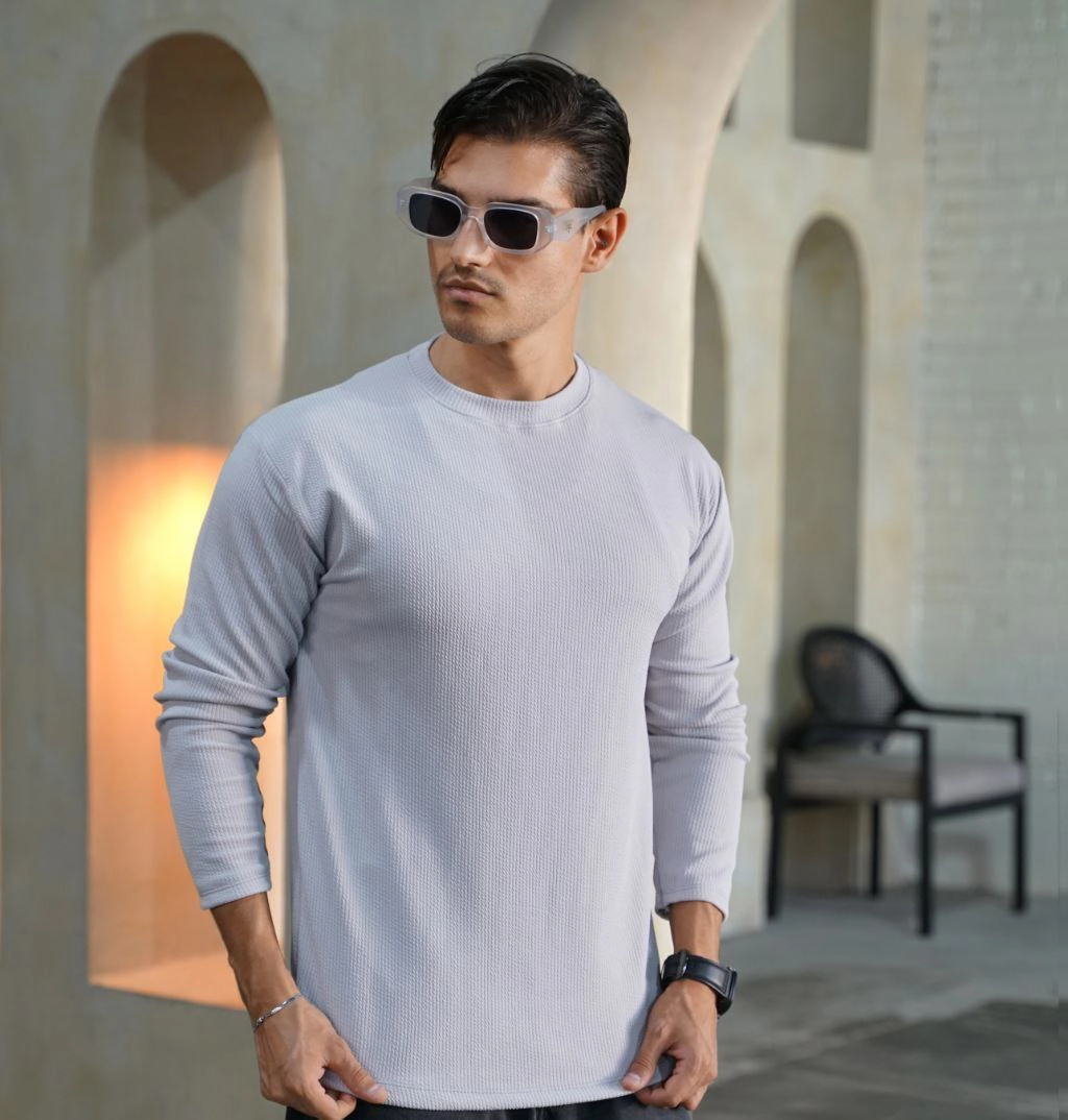 بلوز مردانه آستین بلند طوسی مدل Atra