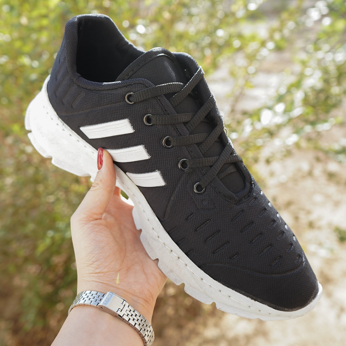 کفش ورزشی مردانه مشکی زیره سفید(T) مدل Alshen