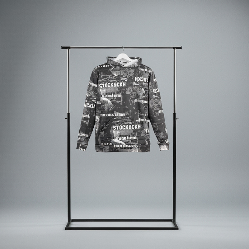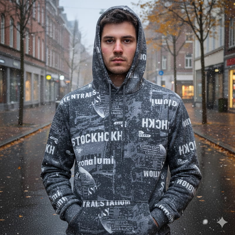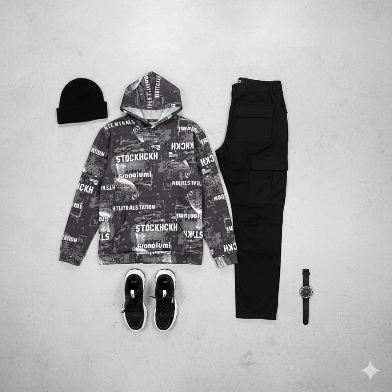 هودی طرحدار مردانه مشکی مدل stock