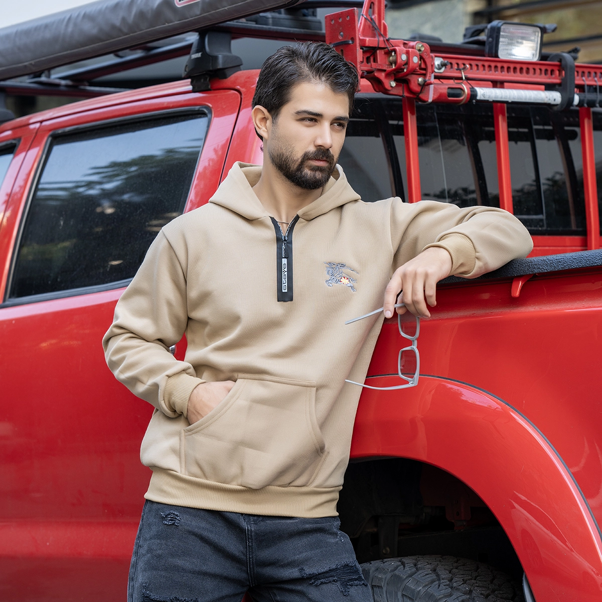 هودی مردانه کرم مدل Vahid