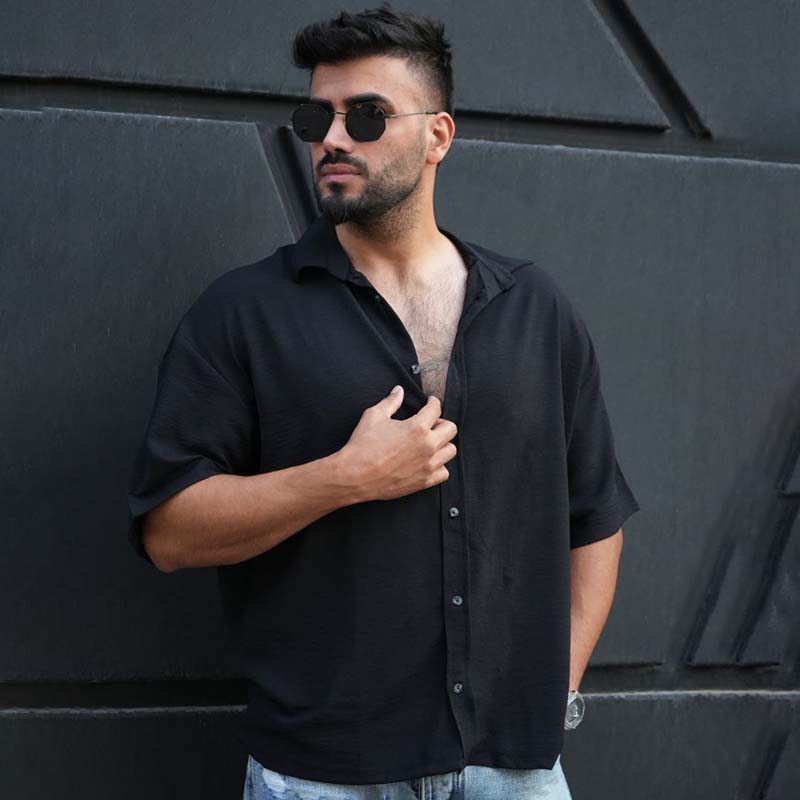 پیراهن آستین کوتاه مشکی مردانه مدل باکسی