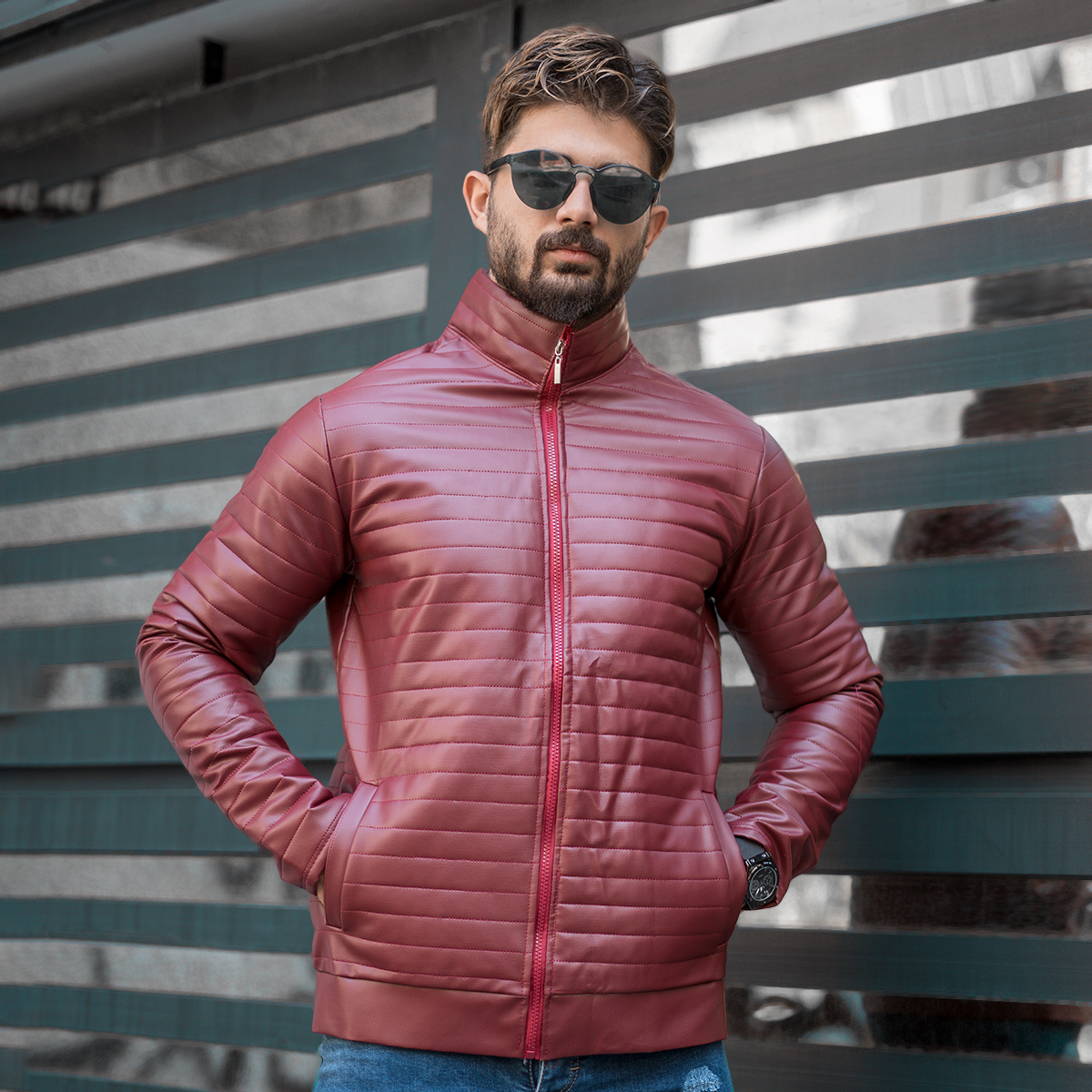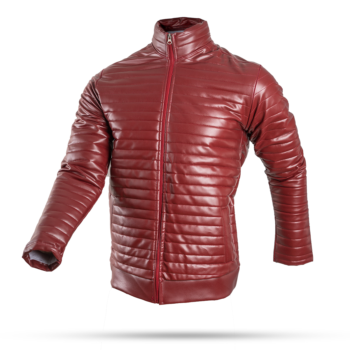 کاپشن چرم مردانه زرشکی مدل TIMER