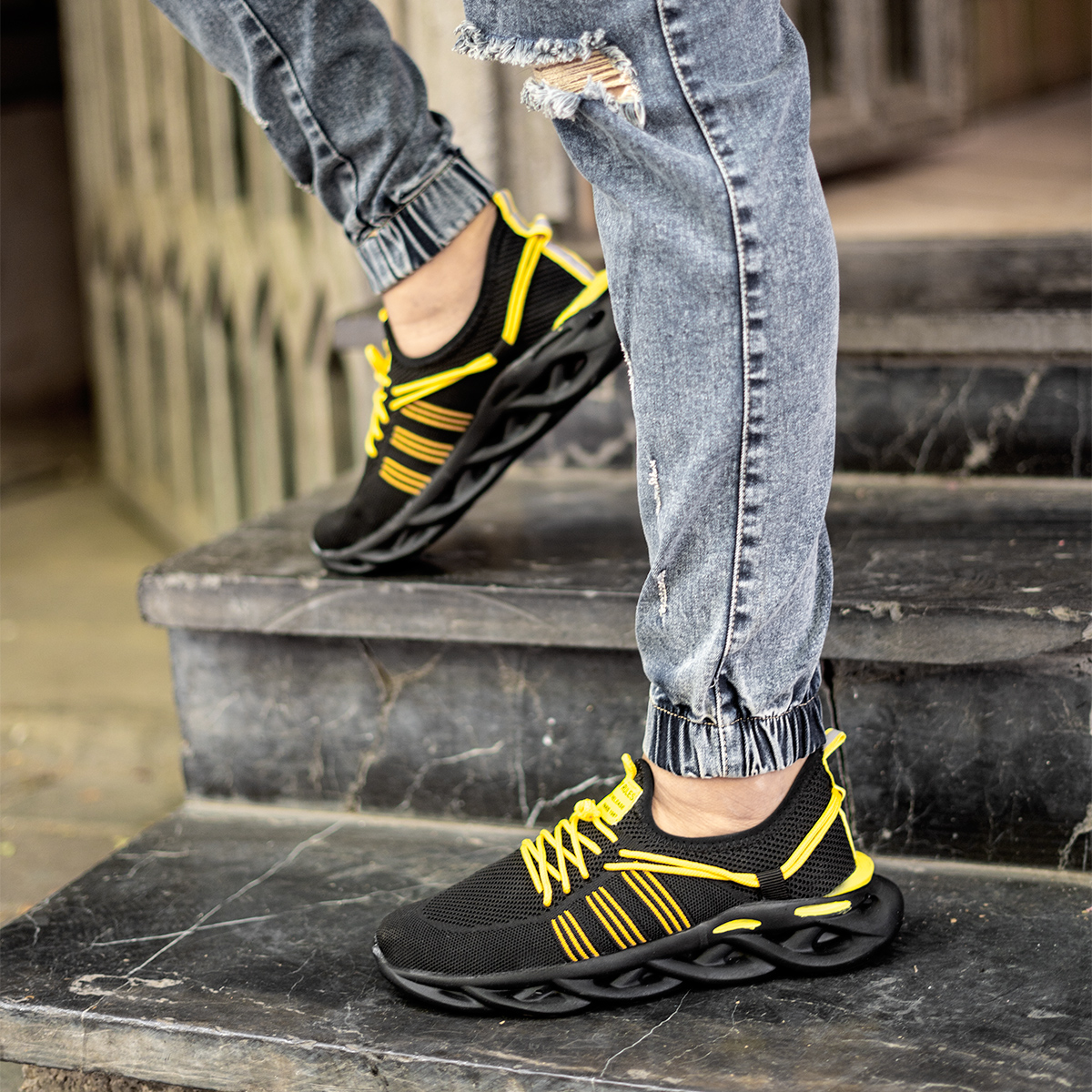 کفش ورزشی مشکی زرد مردانه مدل Arisan