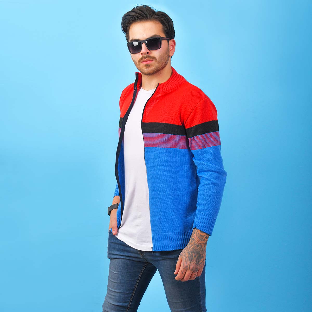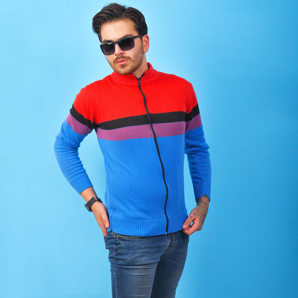 سوئیشرت بافت مردانه مدل Brenda رنگ قرمز آبی