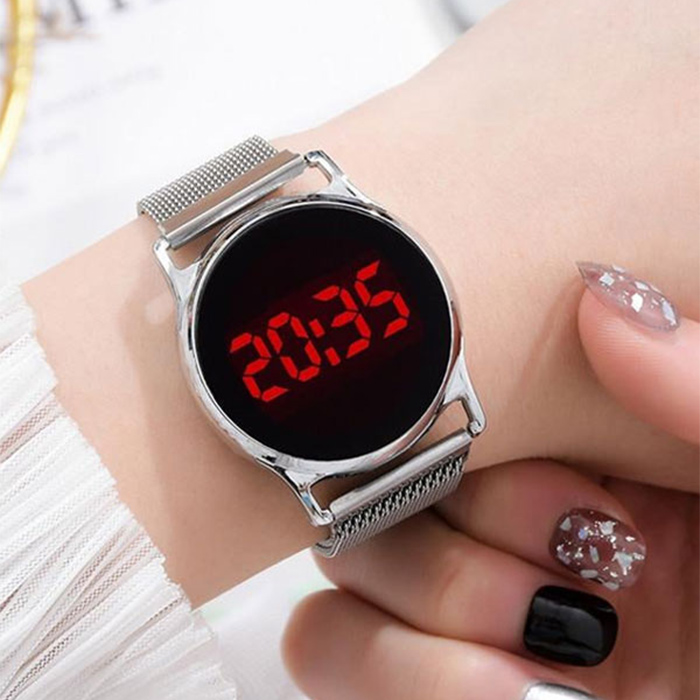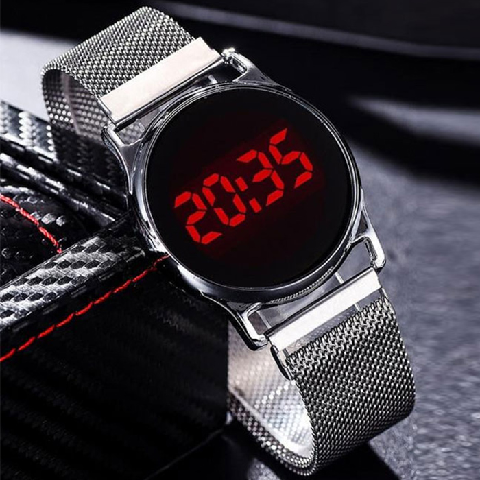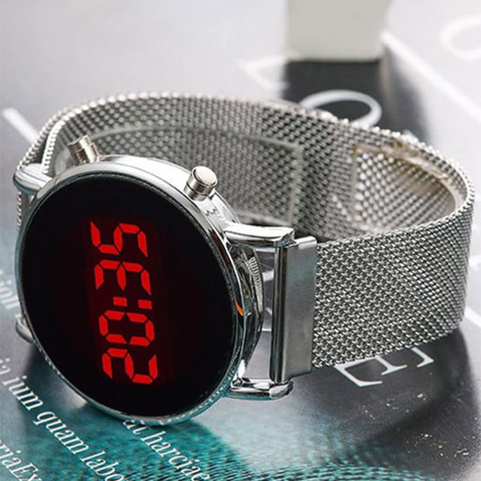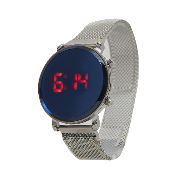 ساعت LED بند فلزی نقره ای مدل Ronas