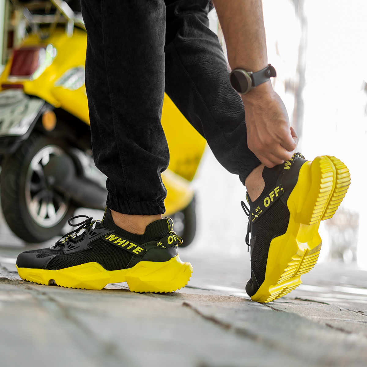 کفش ورزشی OFF WHITE مردانه مشکی زرد مدل Loka-